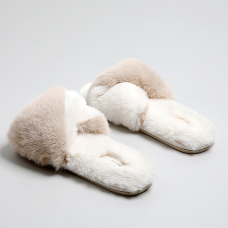 再入荷待ちバイカラーファー ルームシューズ