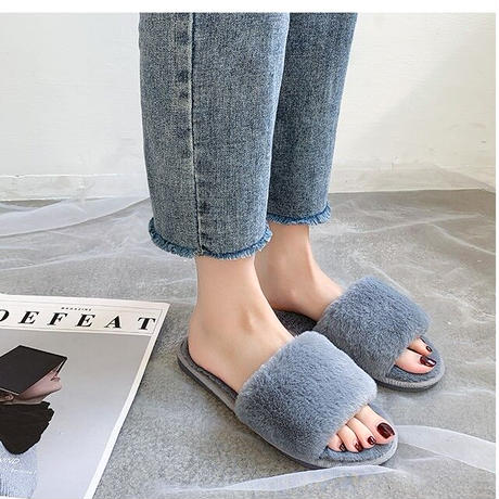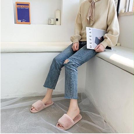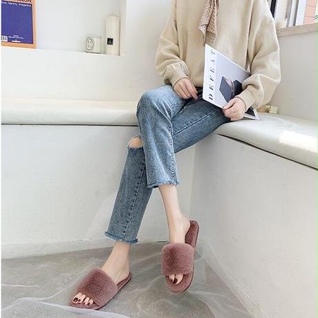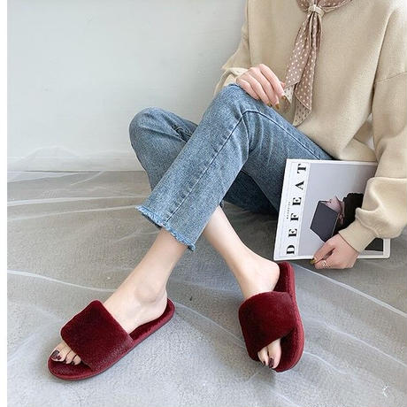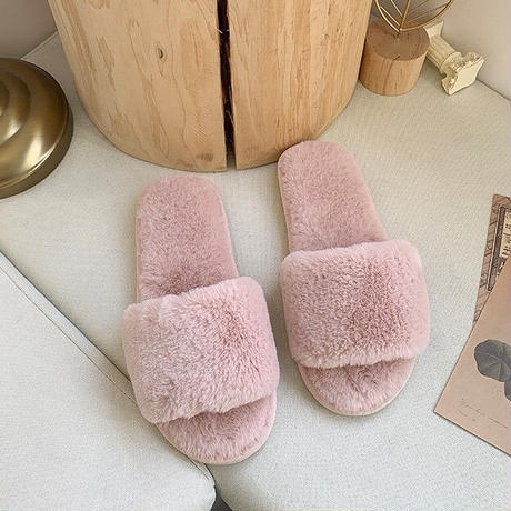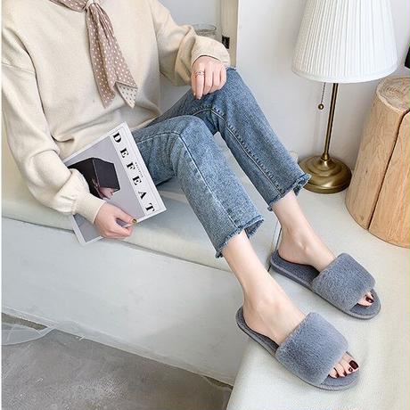 毛足の短いファーが上品な印象のルームシューズです。