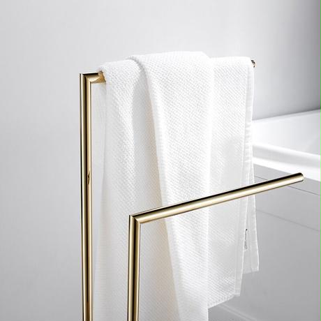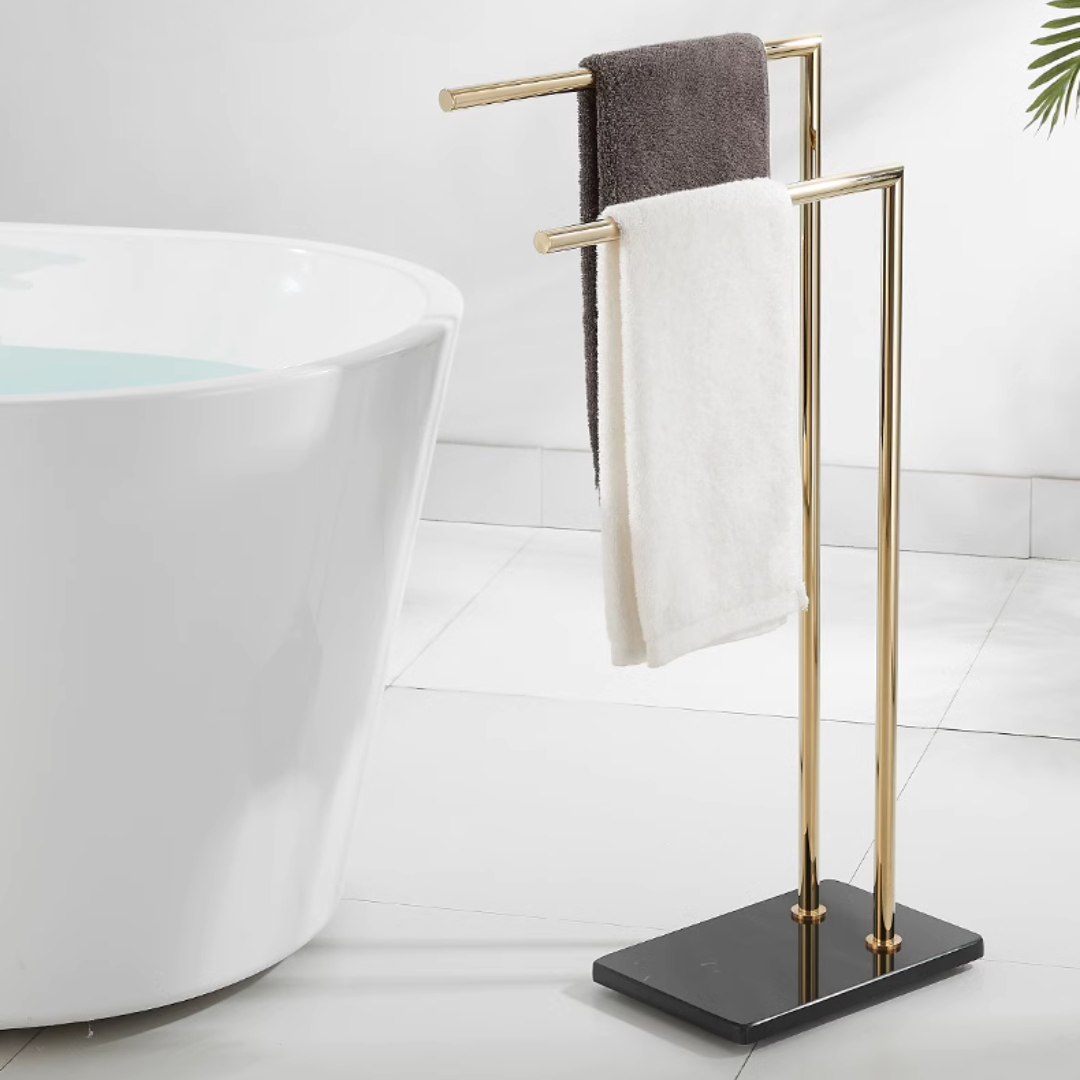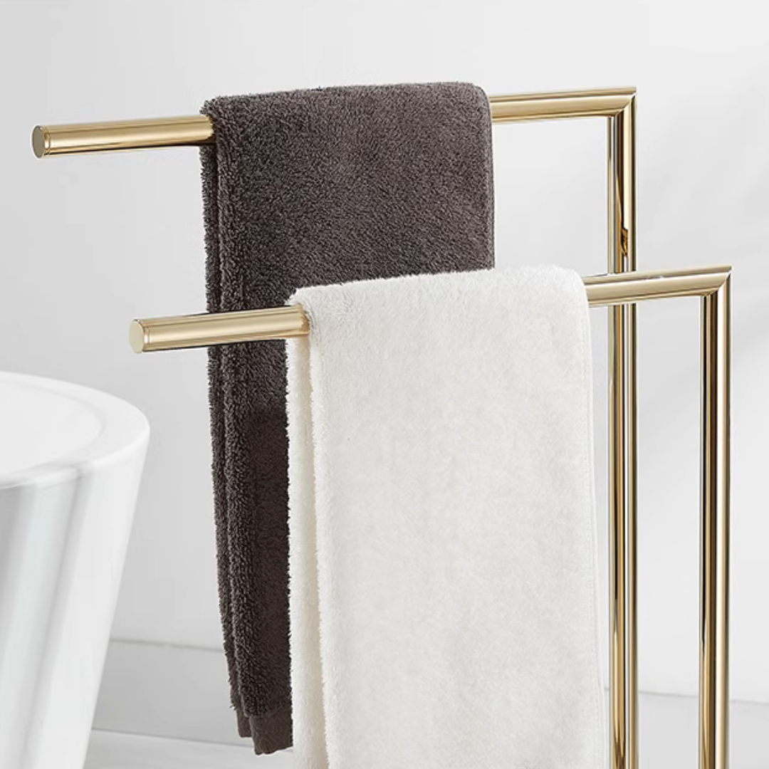 人気のスタイリッシュなゴールドタオルラック。