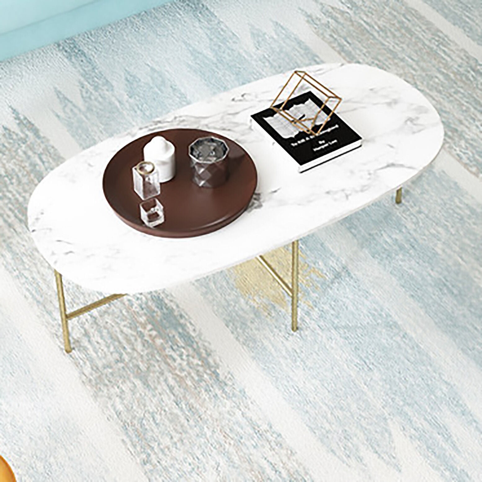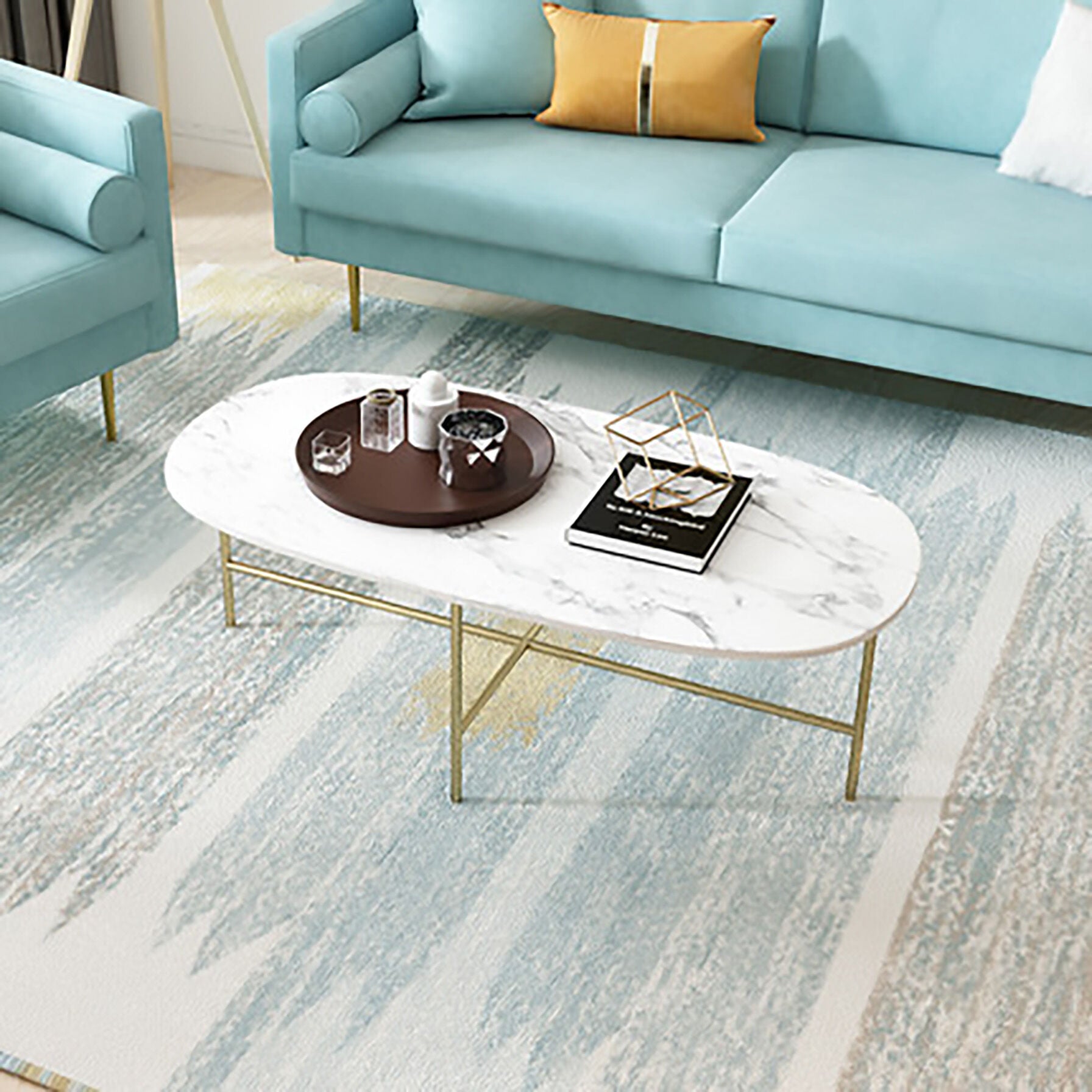 大理石プレミアムオーバルローテーブル