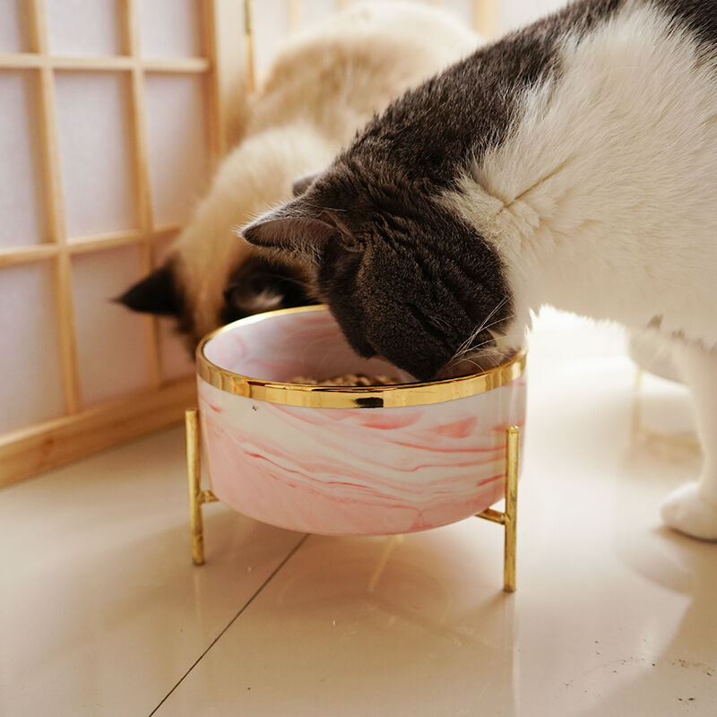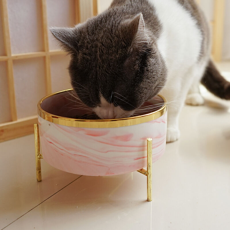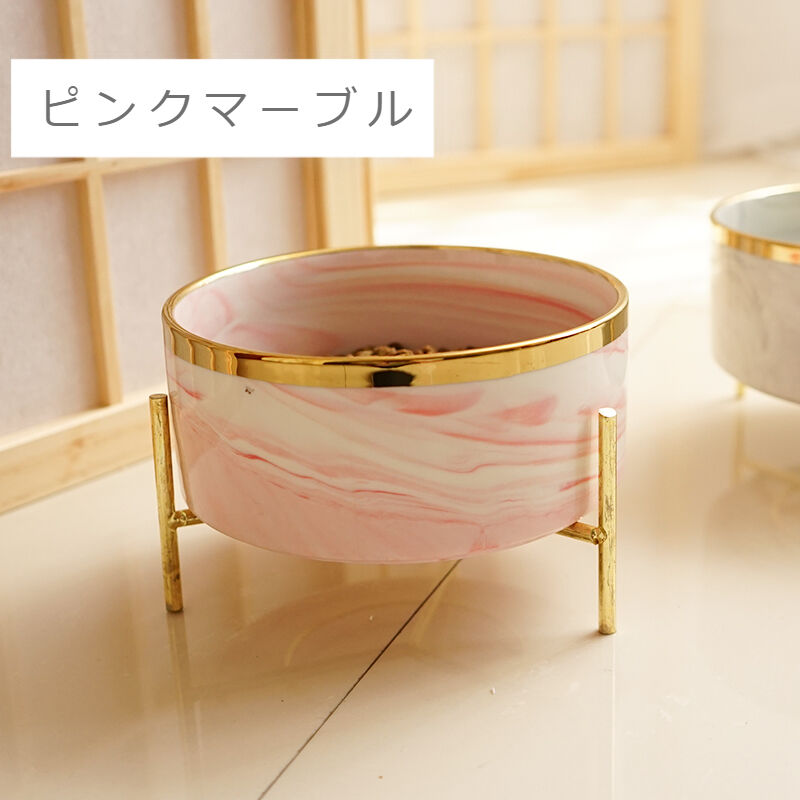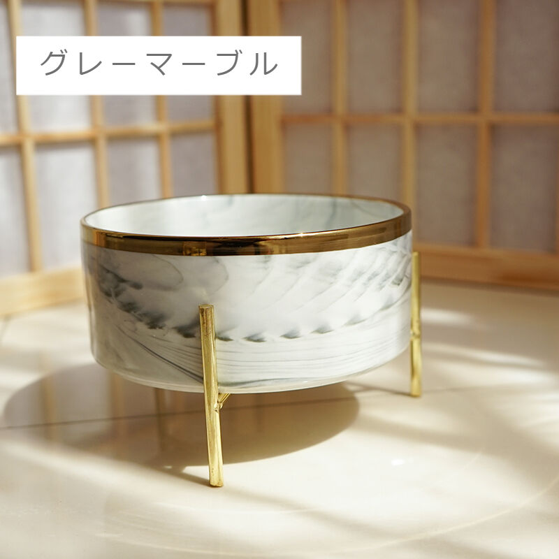 マーブルのかわいい色味にゴールドが高級感をプラスしてくれるおしゃれなペット用フードボウルです♪
