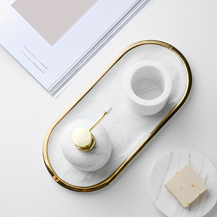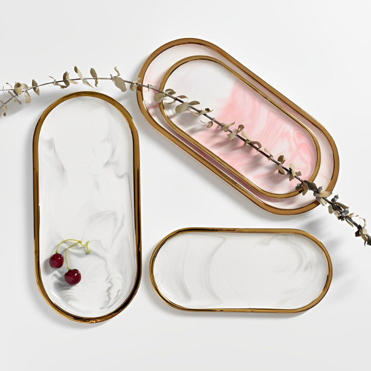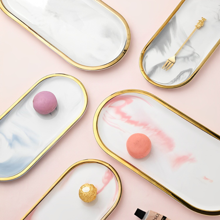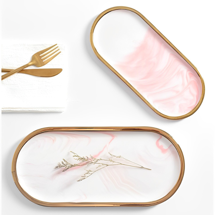 ゴールドのラインとマーブル模様の組み合わせがとっても美しいマルチトレイ♡