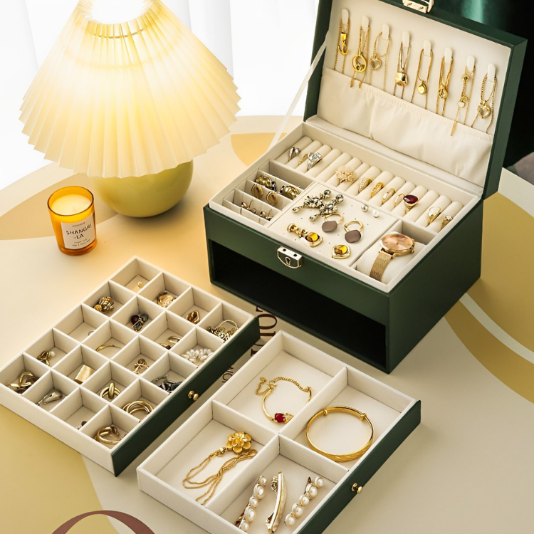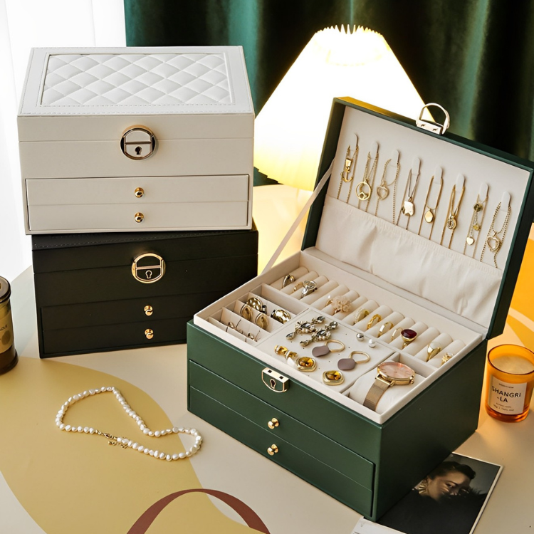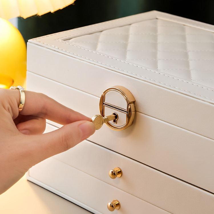 散らかりがちなアクセサリーをまとめて収納できる大容量の鍵付きアクセサリー収納ボックス♪