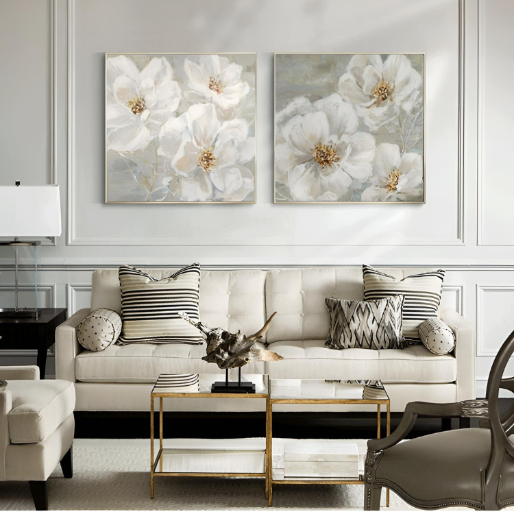 女性らしさを演出してくれる淡い色使いの絵画で、リビングや玄関の装飾にピッタリ♡