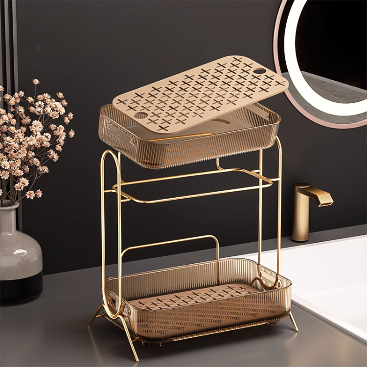 ごちゃつきがちなスキンケア用品などをすっきりまとめて収納可能なラック。