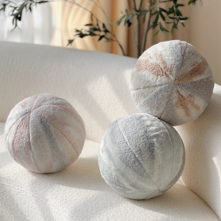 ぬいぐるみのように愛らしいボール型のクッション。