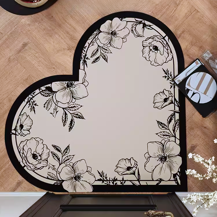 ボタニカル柄のハート形マルチマット。