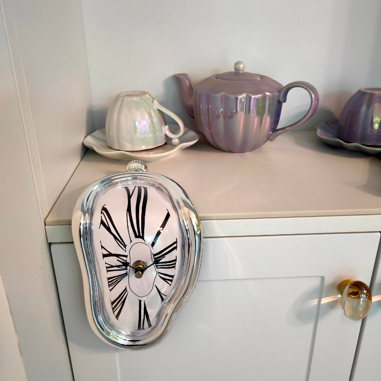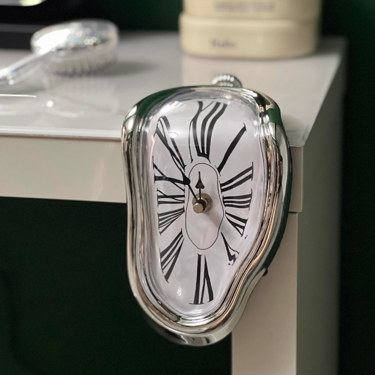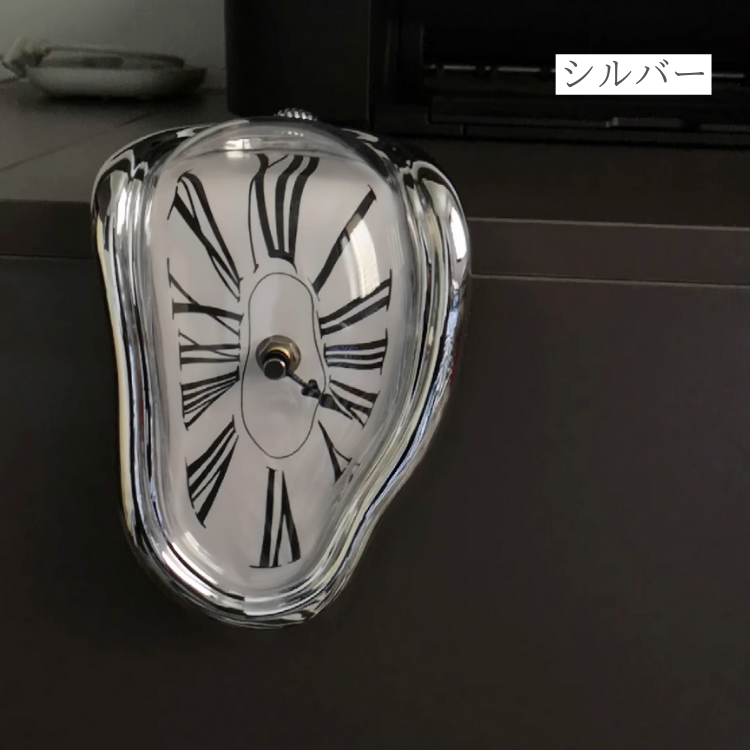 フレームが溶けてしまったような、ユニークで可愛らしい時計。