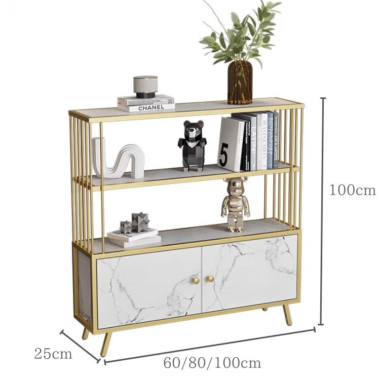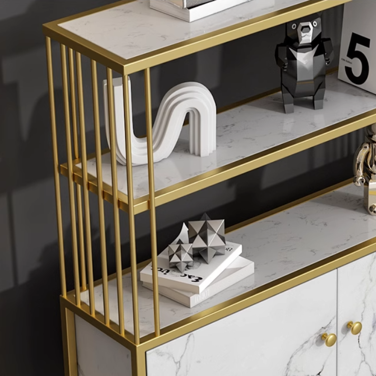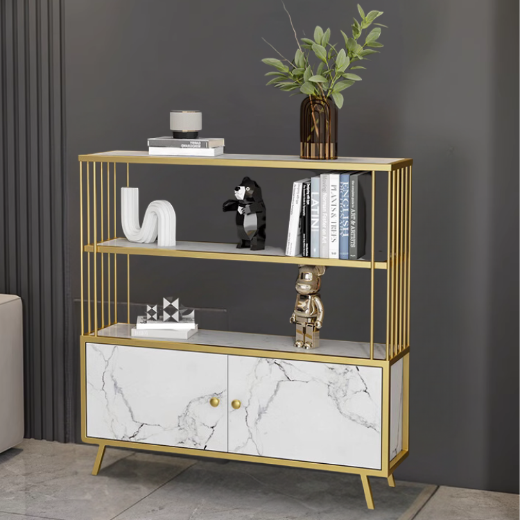 マーブル模様とゴールドがラグジュアリーな雰囲気をもたらす、上品な収納棚。