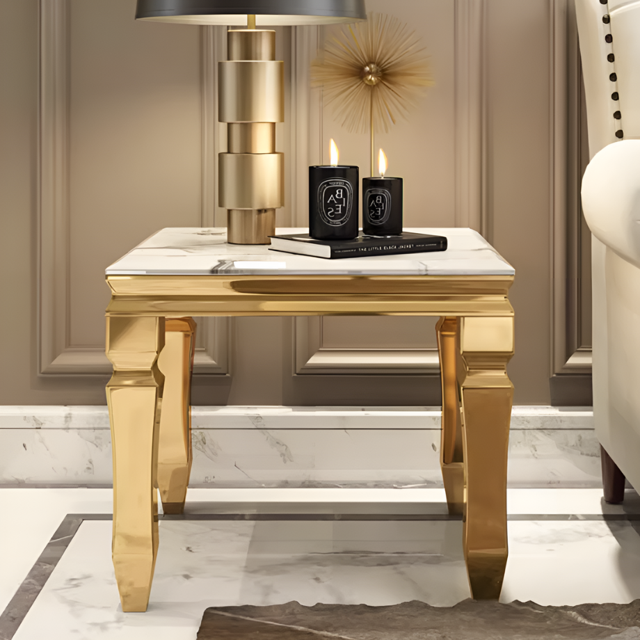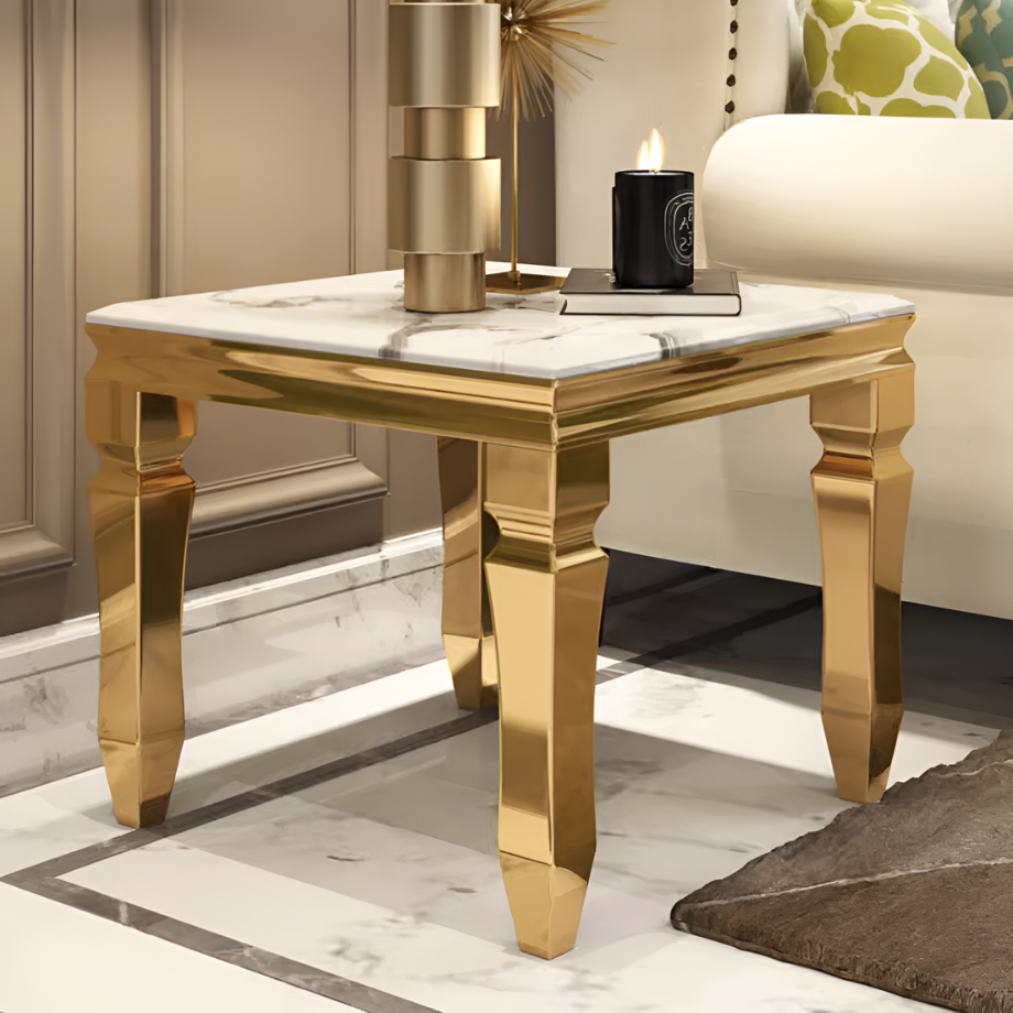 大理石調シャインゴールドコーナーテーブル