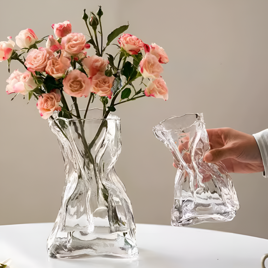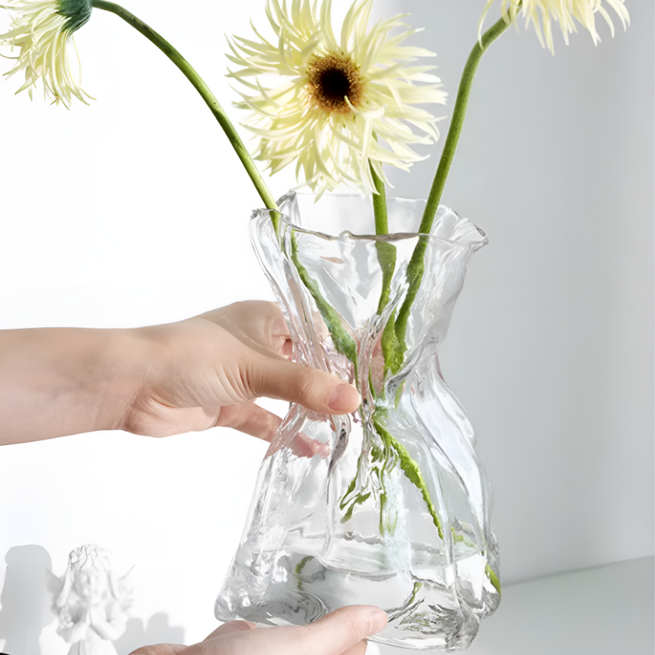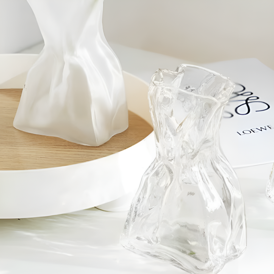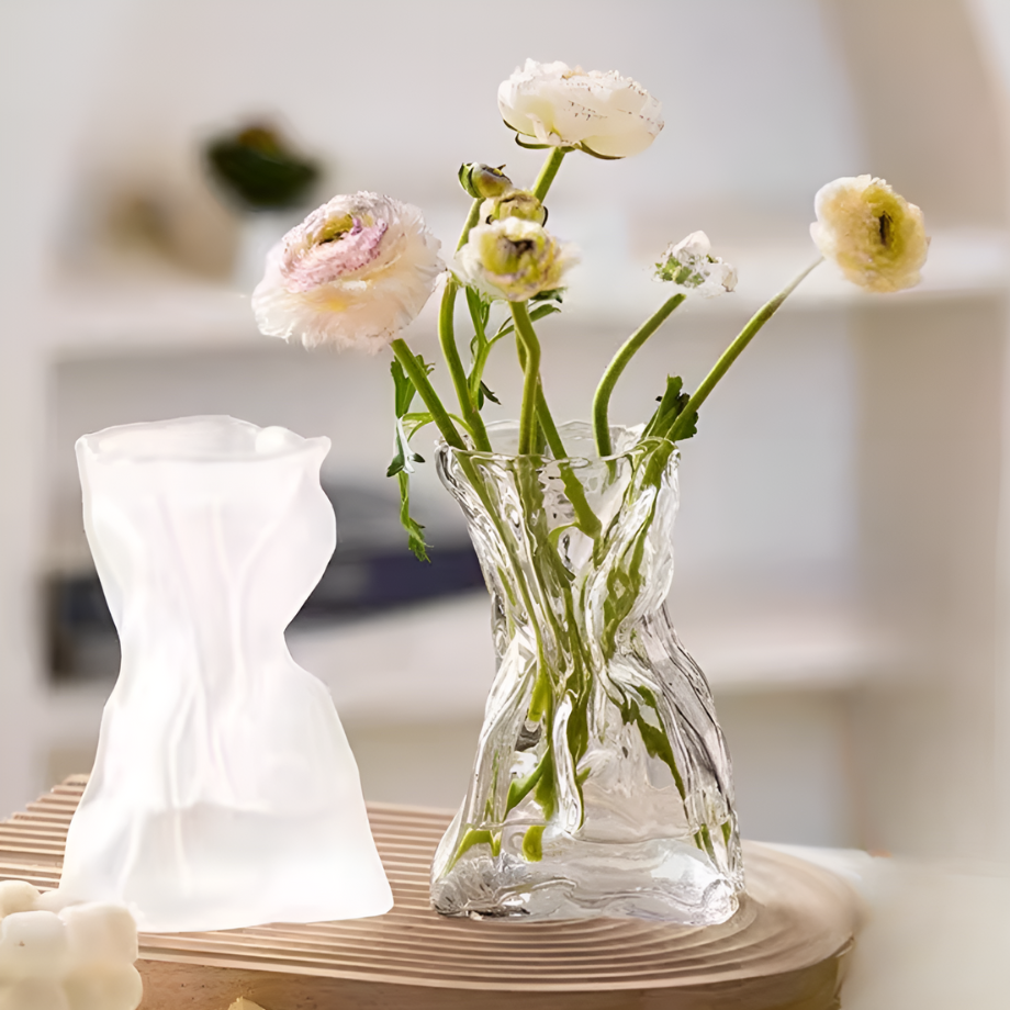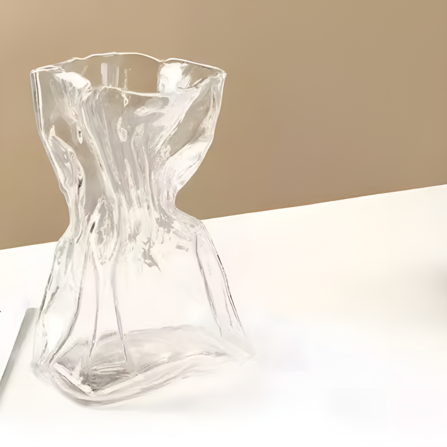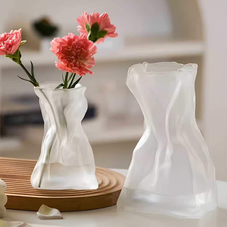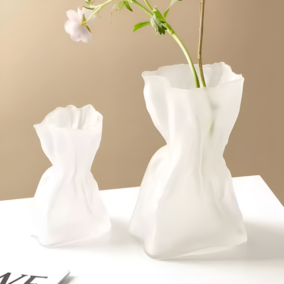 ホワイトガラスウェーブフラワーベース