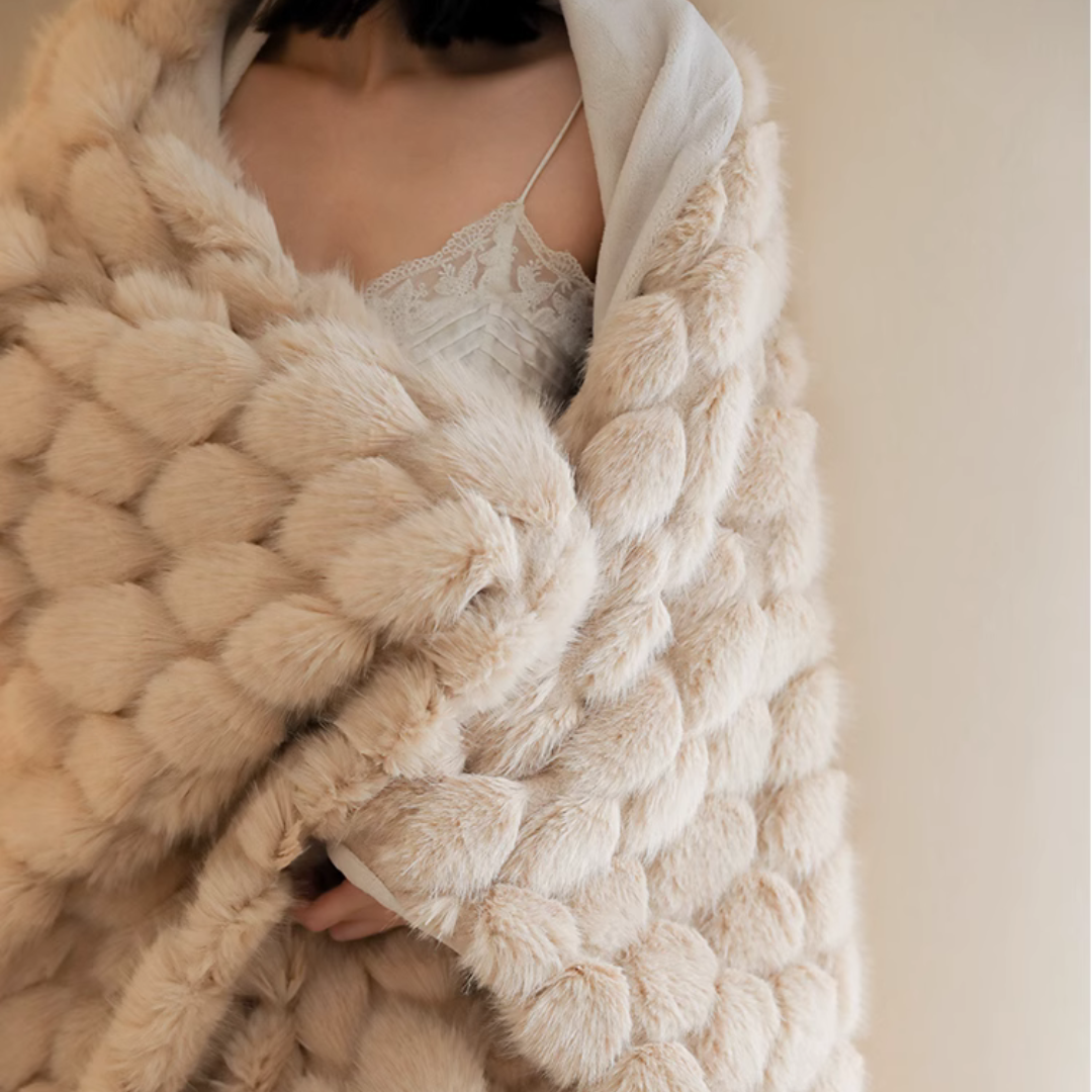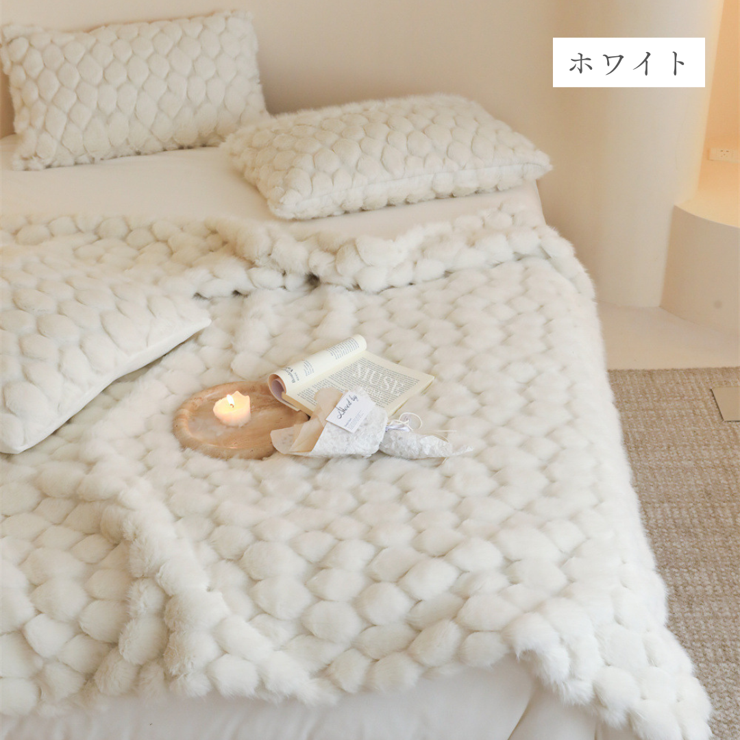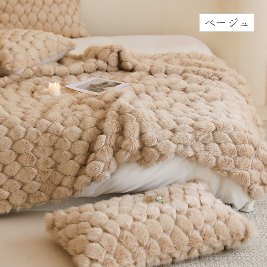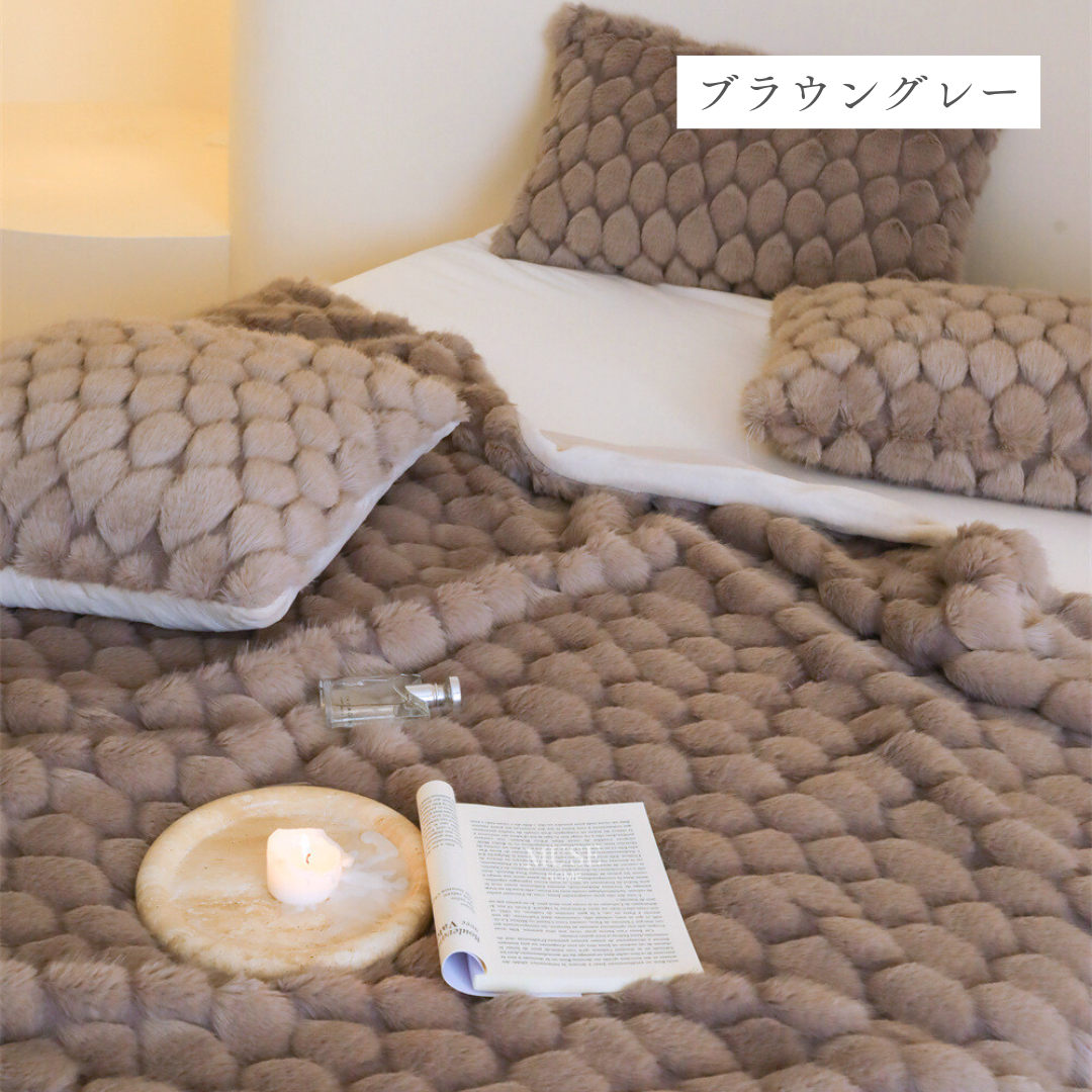 包み込まれるようなふんわりとした質感と、美しく上品なデザインが特徴のブランケット♪
