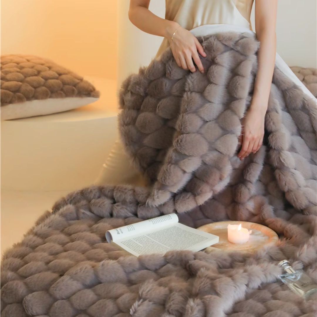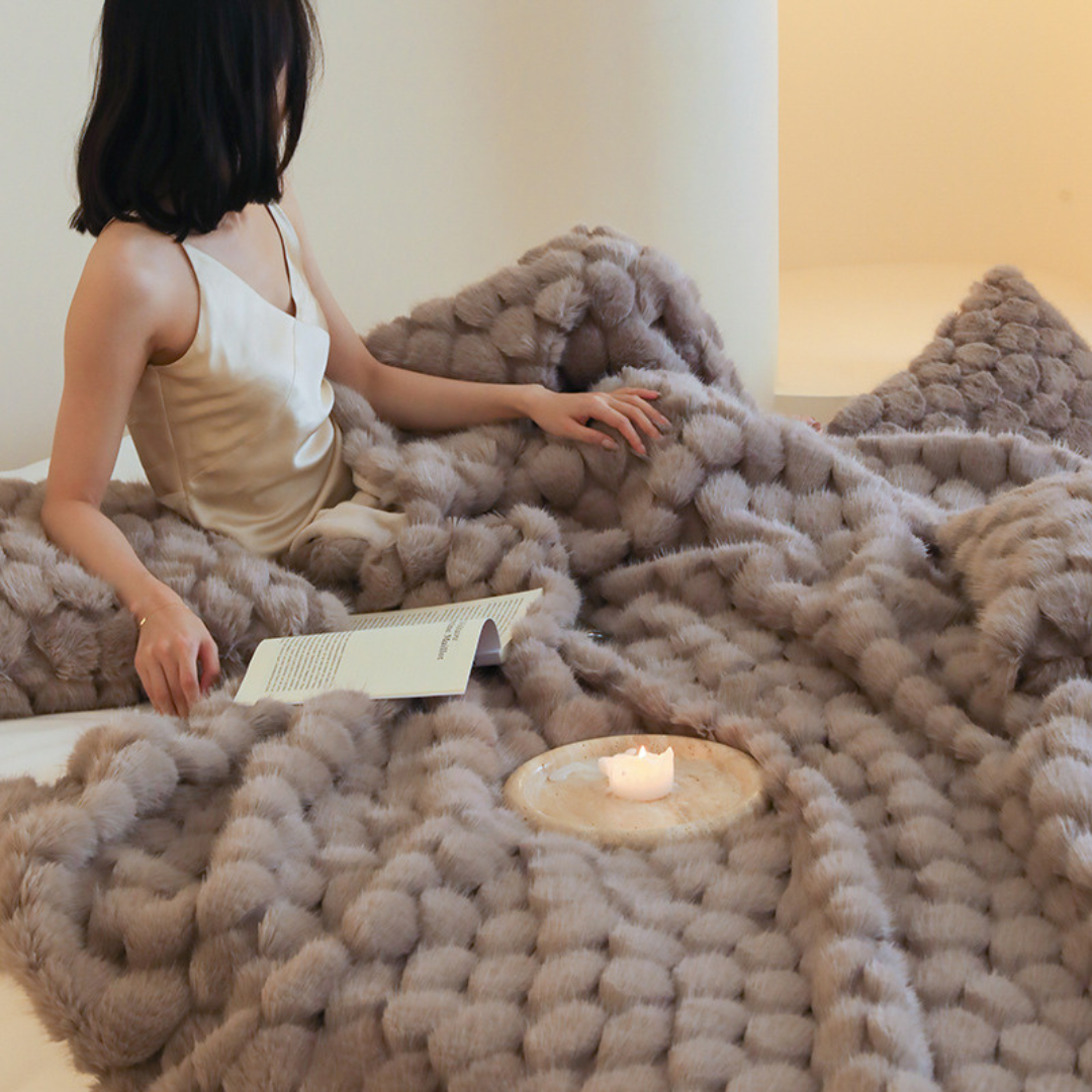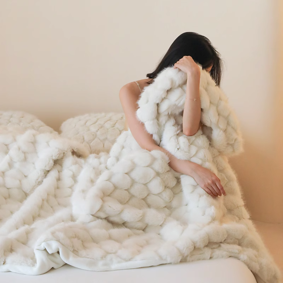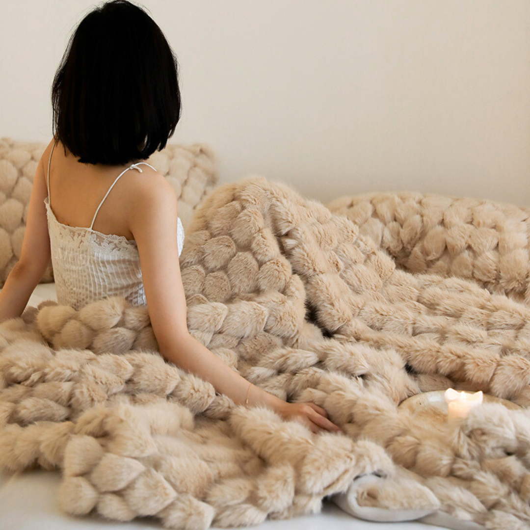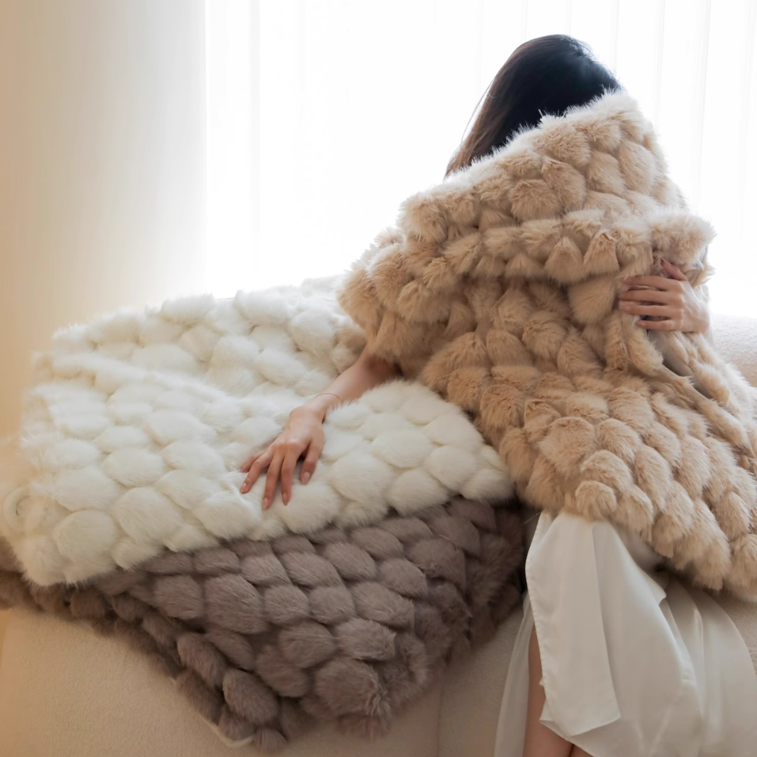 包み込まれるようなふんわりとした質感と、美しく上品なデザインが特徴のブランケット♪