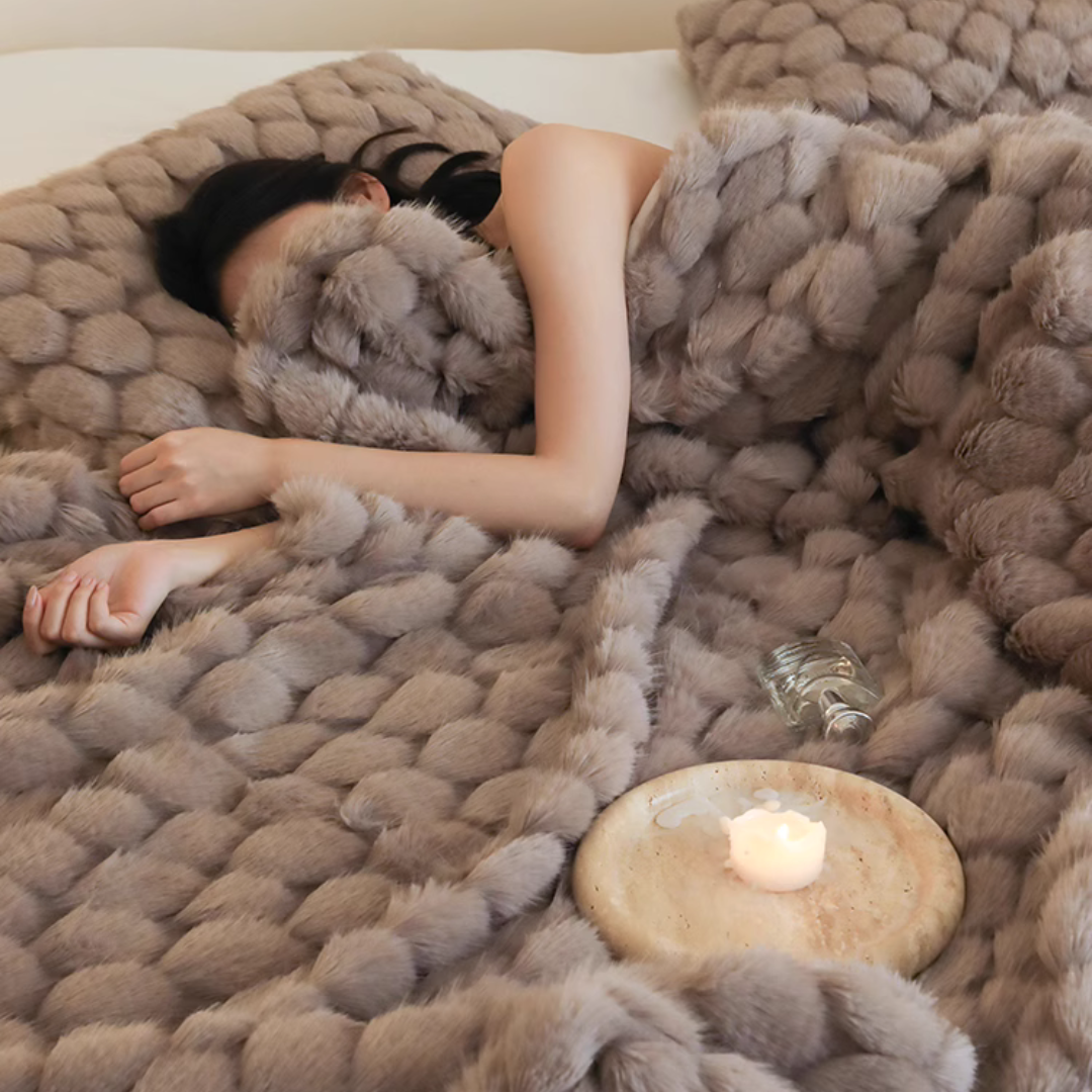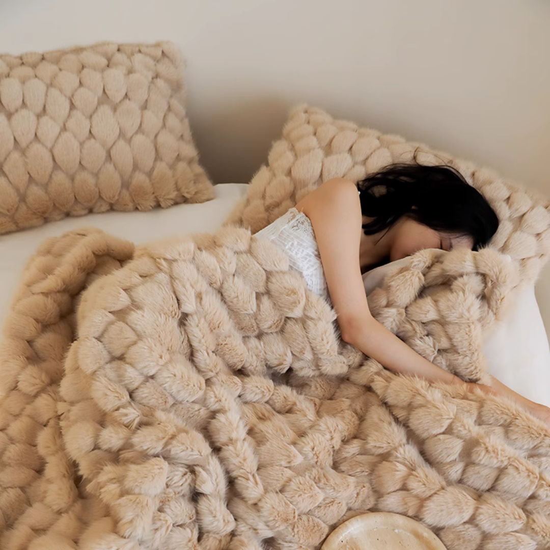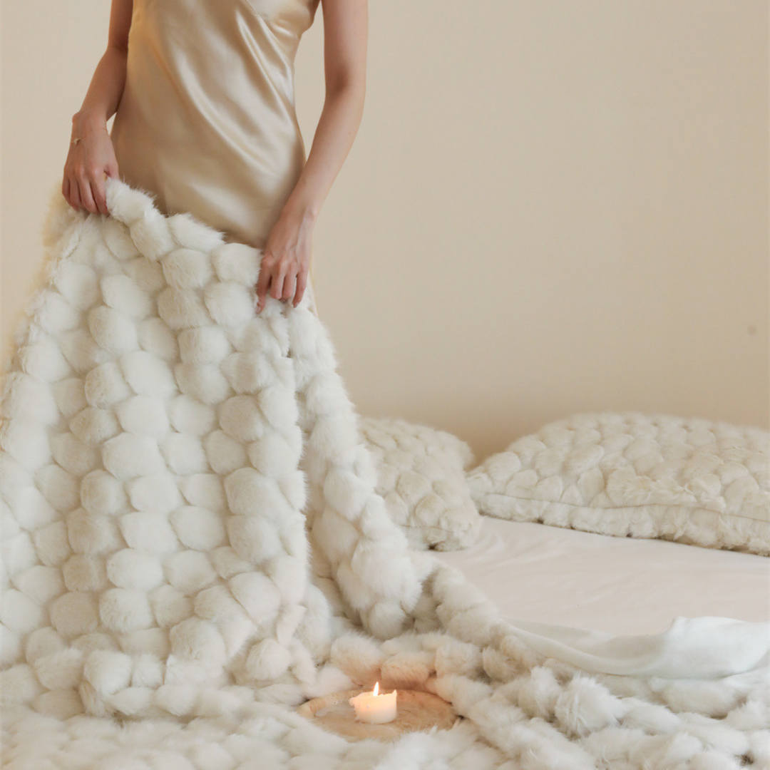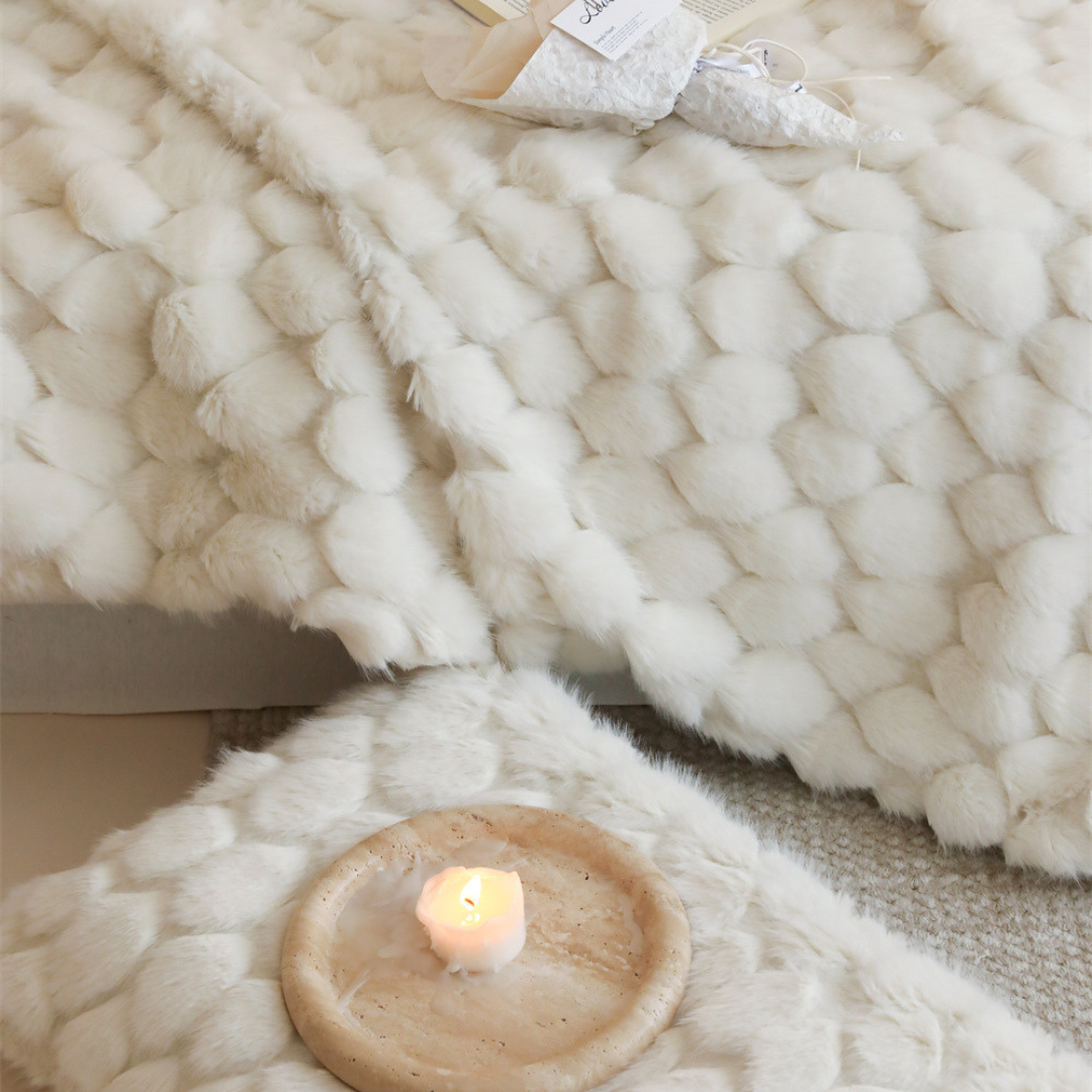 包み込まれるようなふんわりとした質感と、美しく上品なデザインが特徴のブランケット♪
