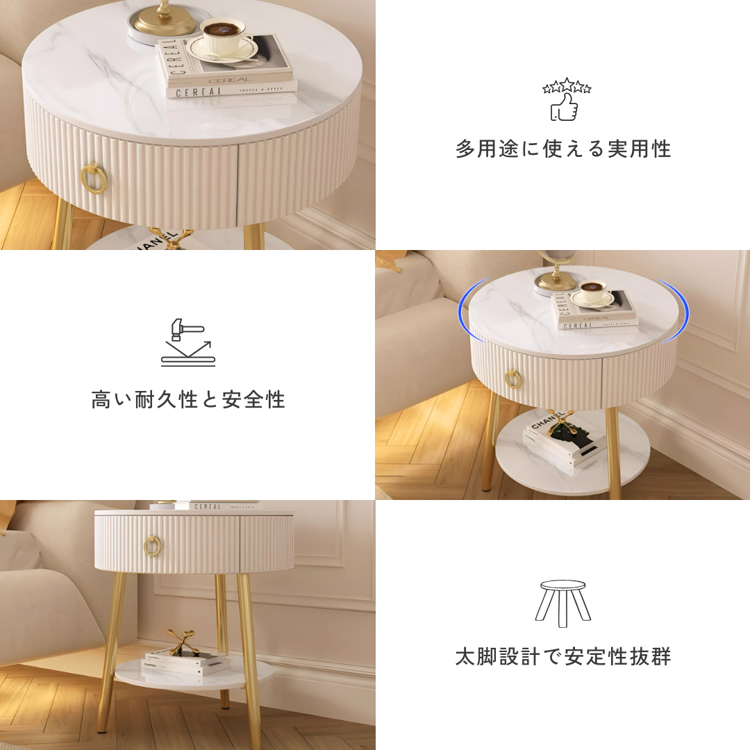 エレガントサイドキャビネットテーブル