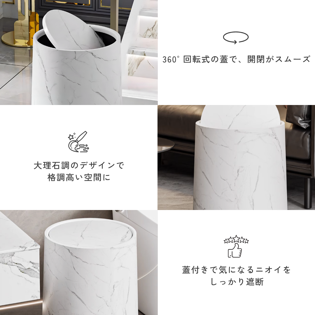 マーブル調ゴールドスピンリドダストボックス