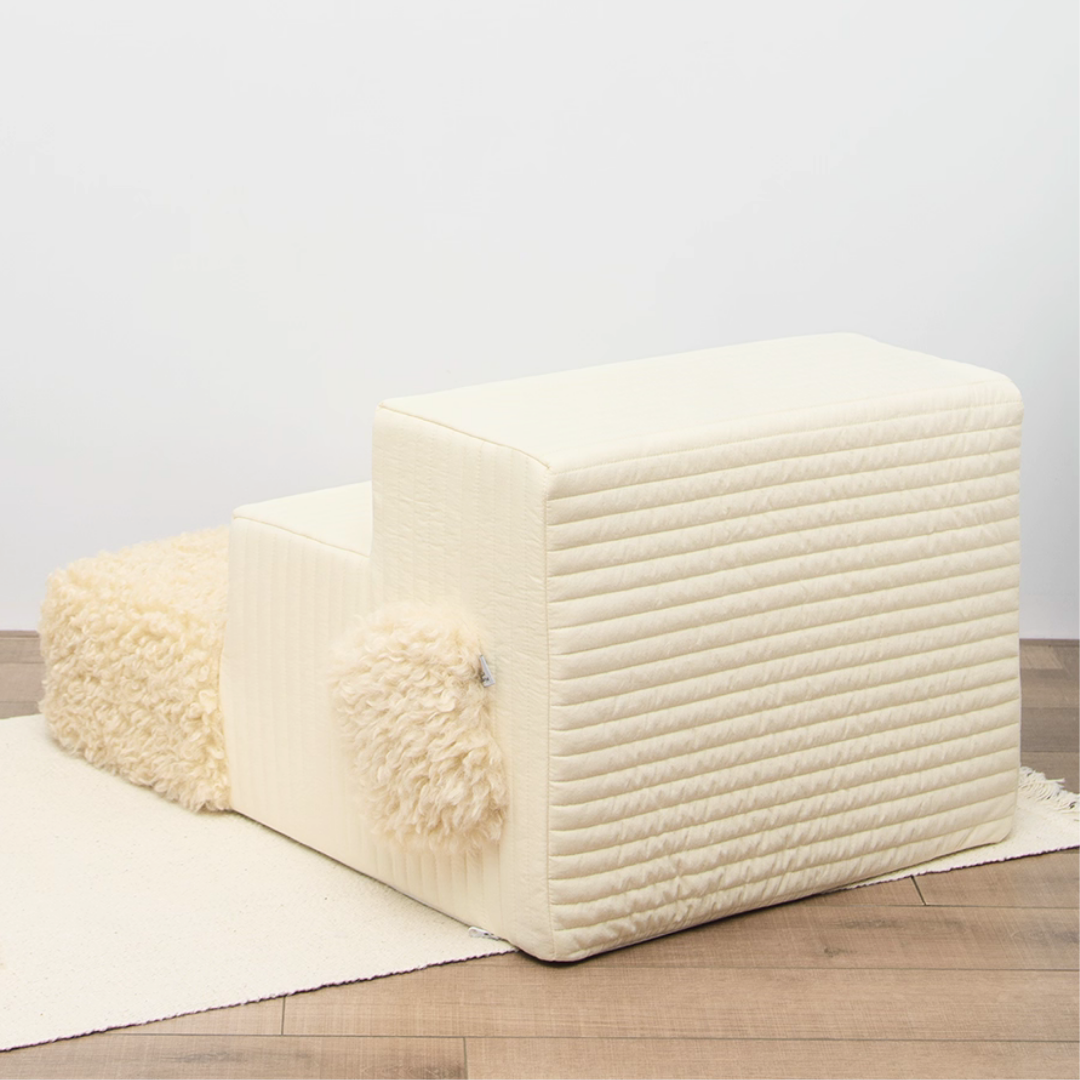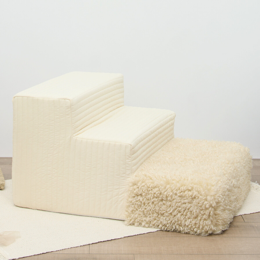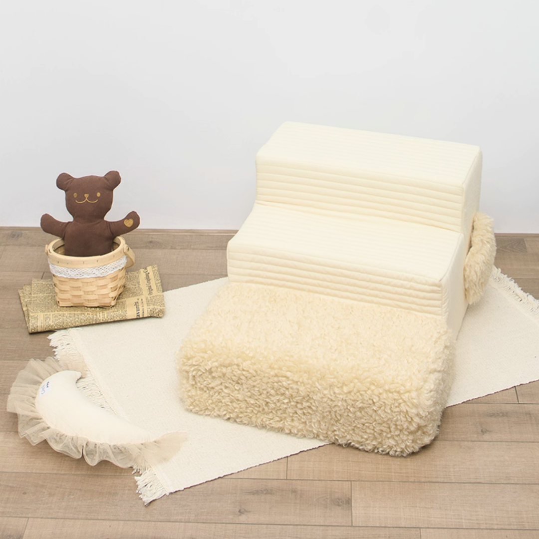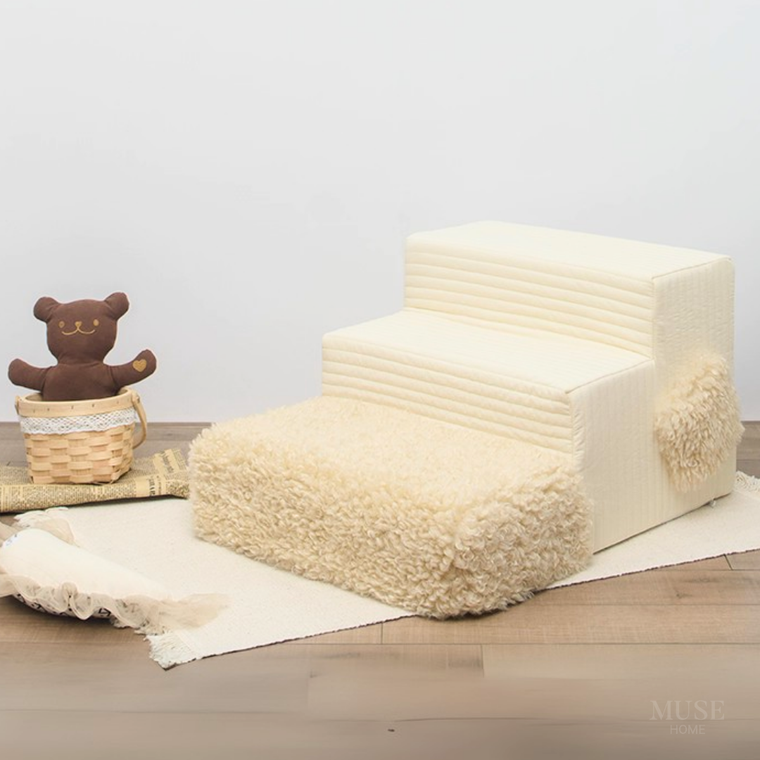 もこもことした柔らかなボア素材で仕立てた、ペット用のドッグステップです♪