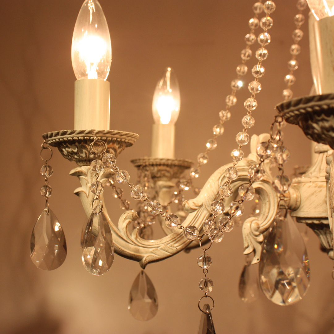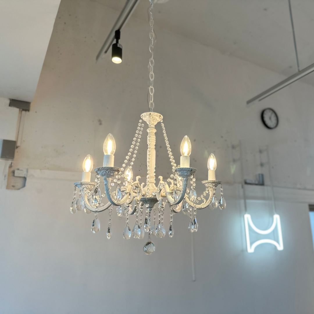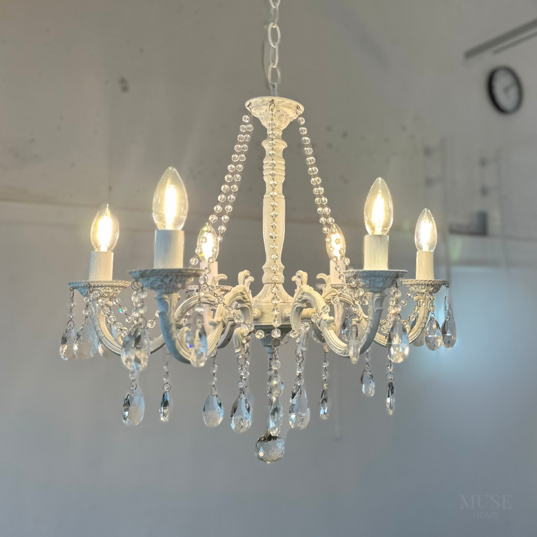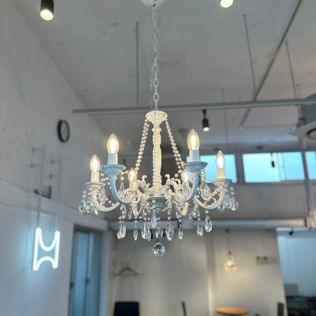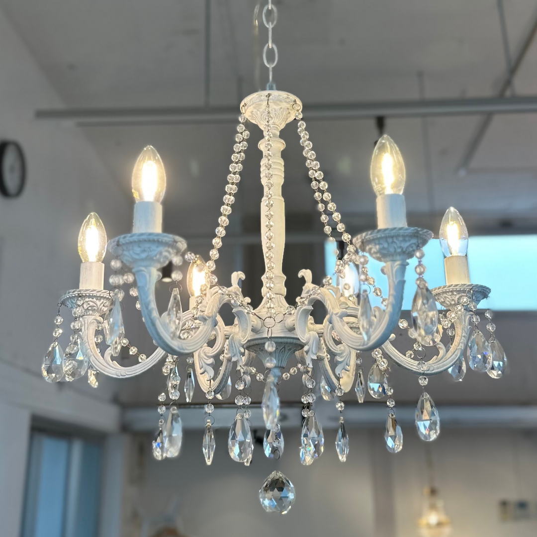【即納】ホワイトアンティーククリスタルシャンデリア