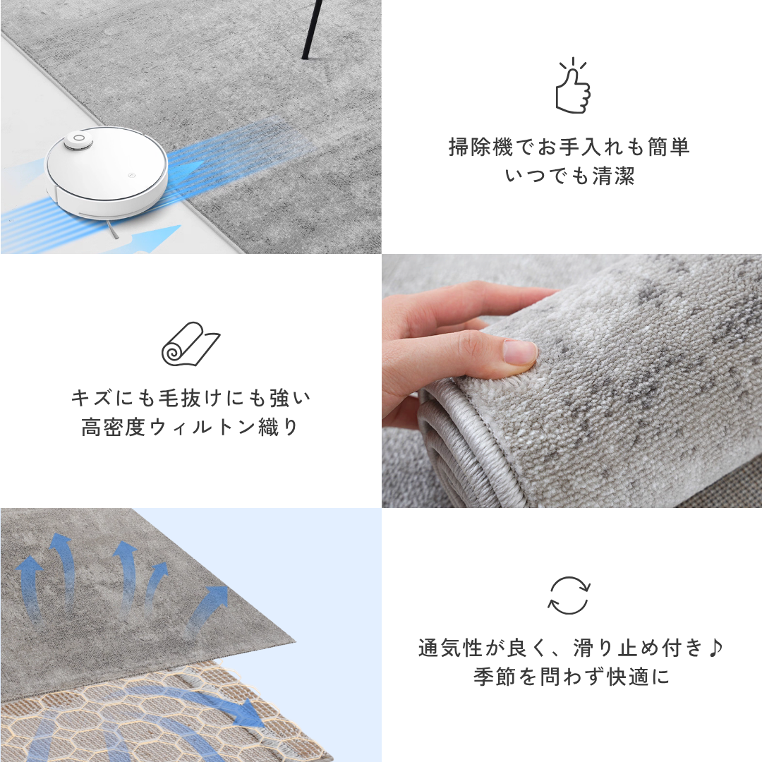 洗練された色の陰影が、空間に深みを与えるモダンラグです。