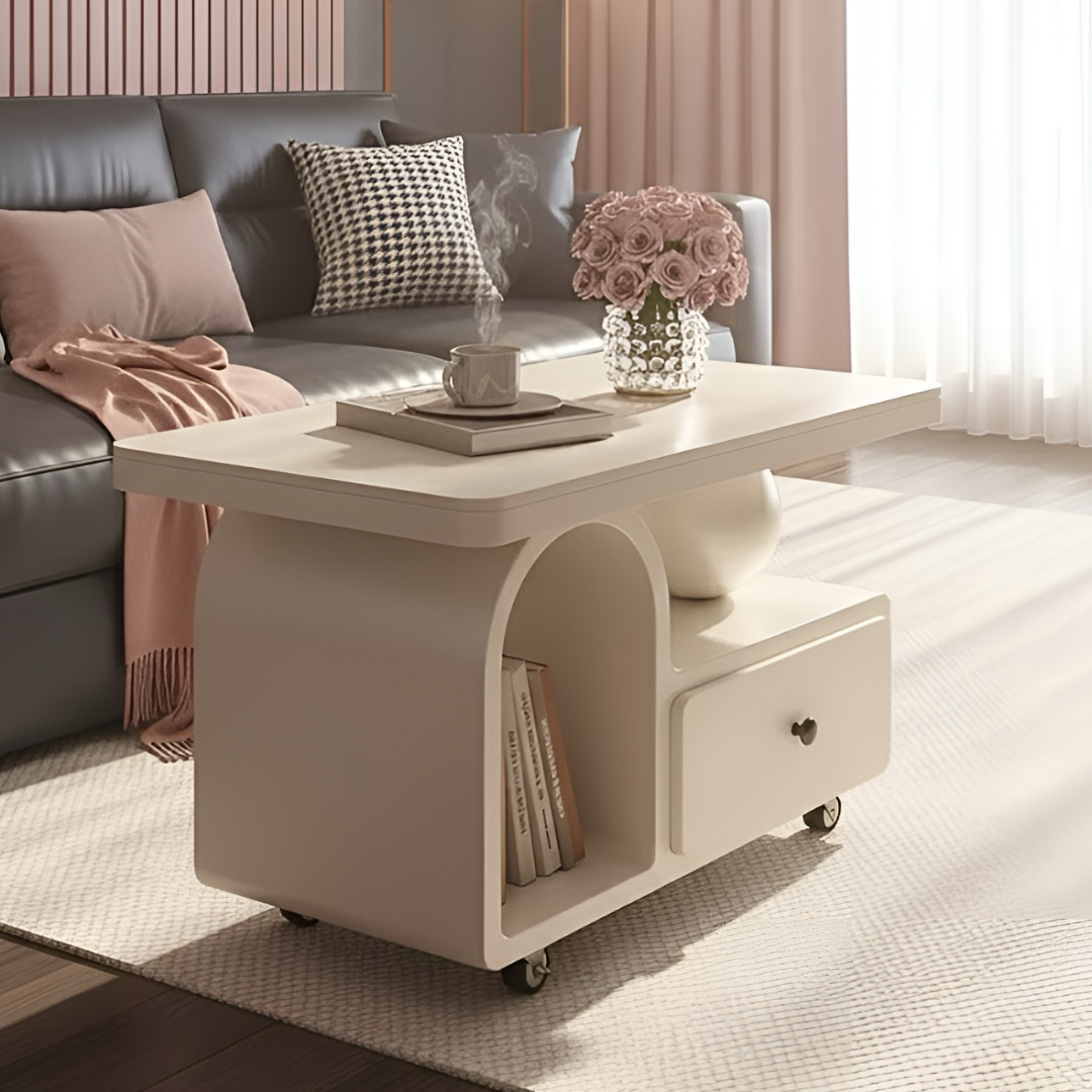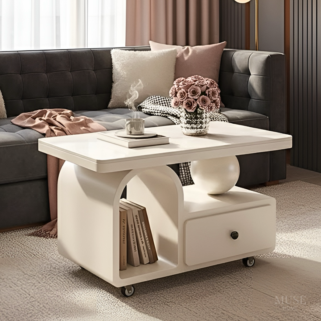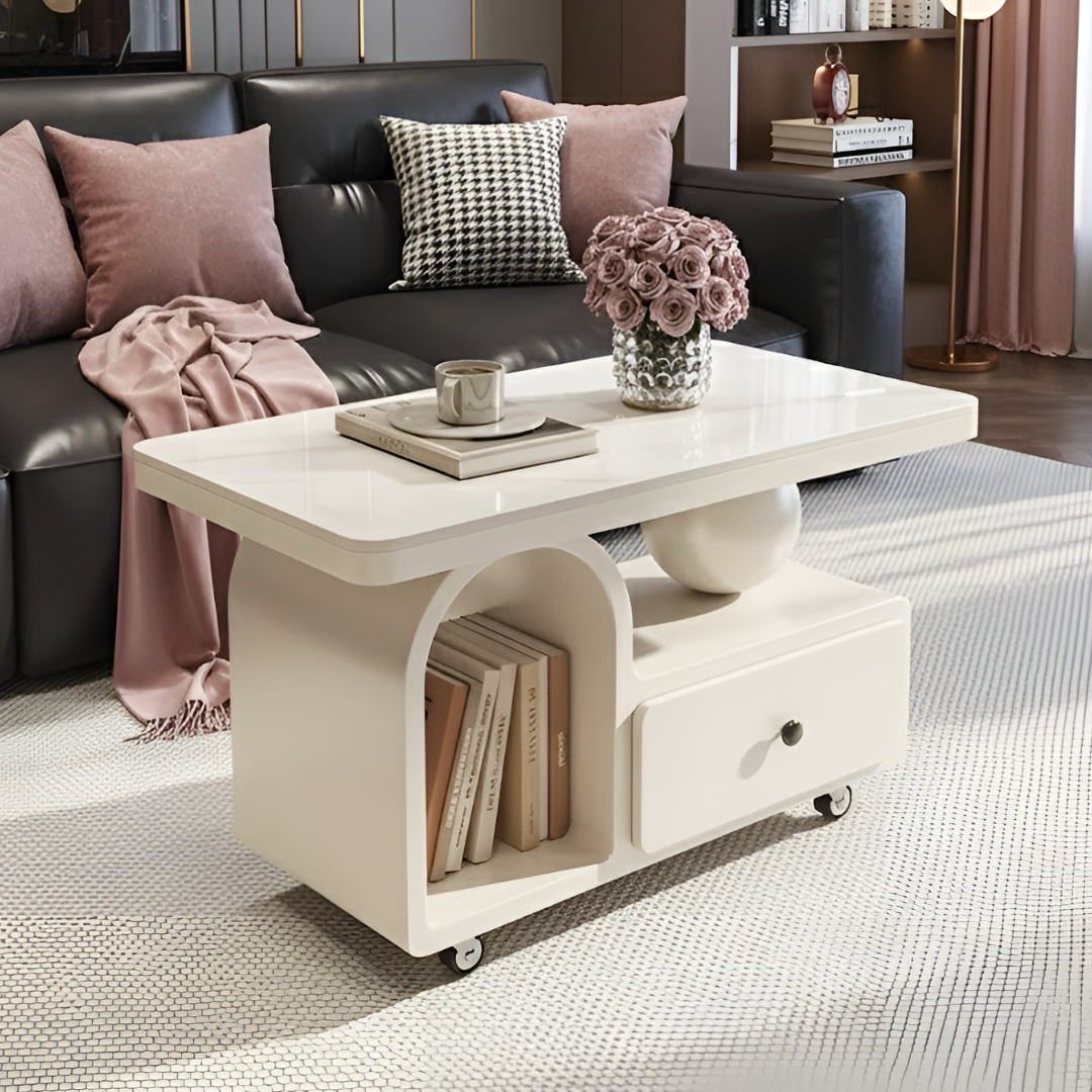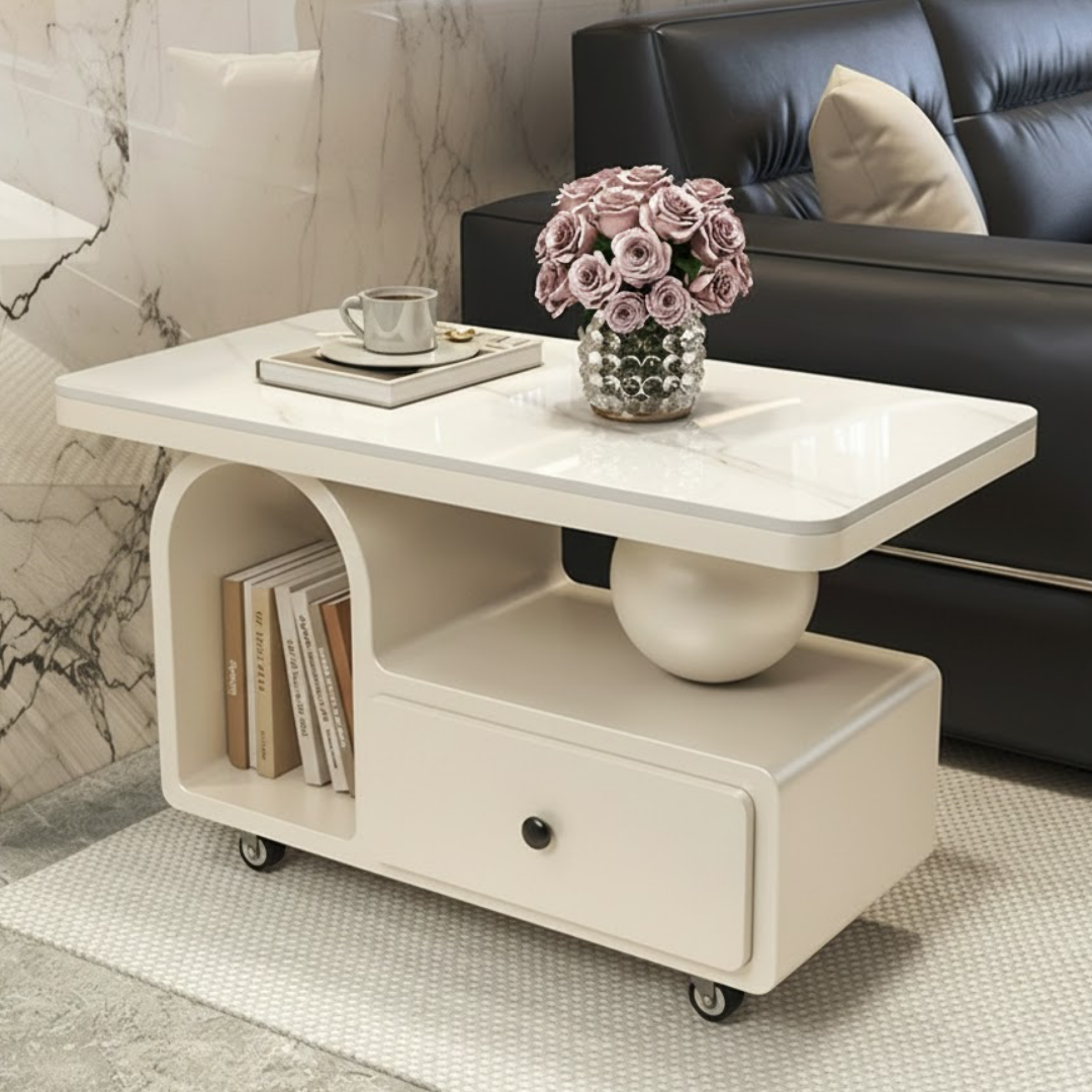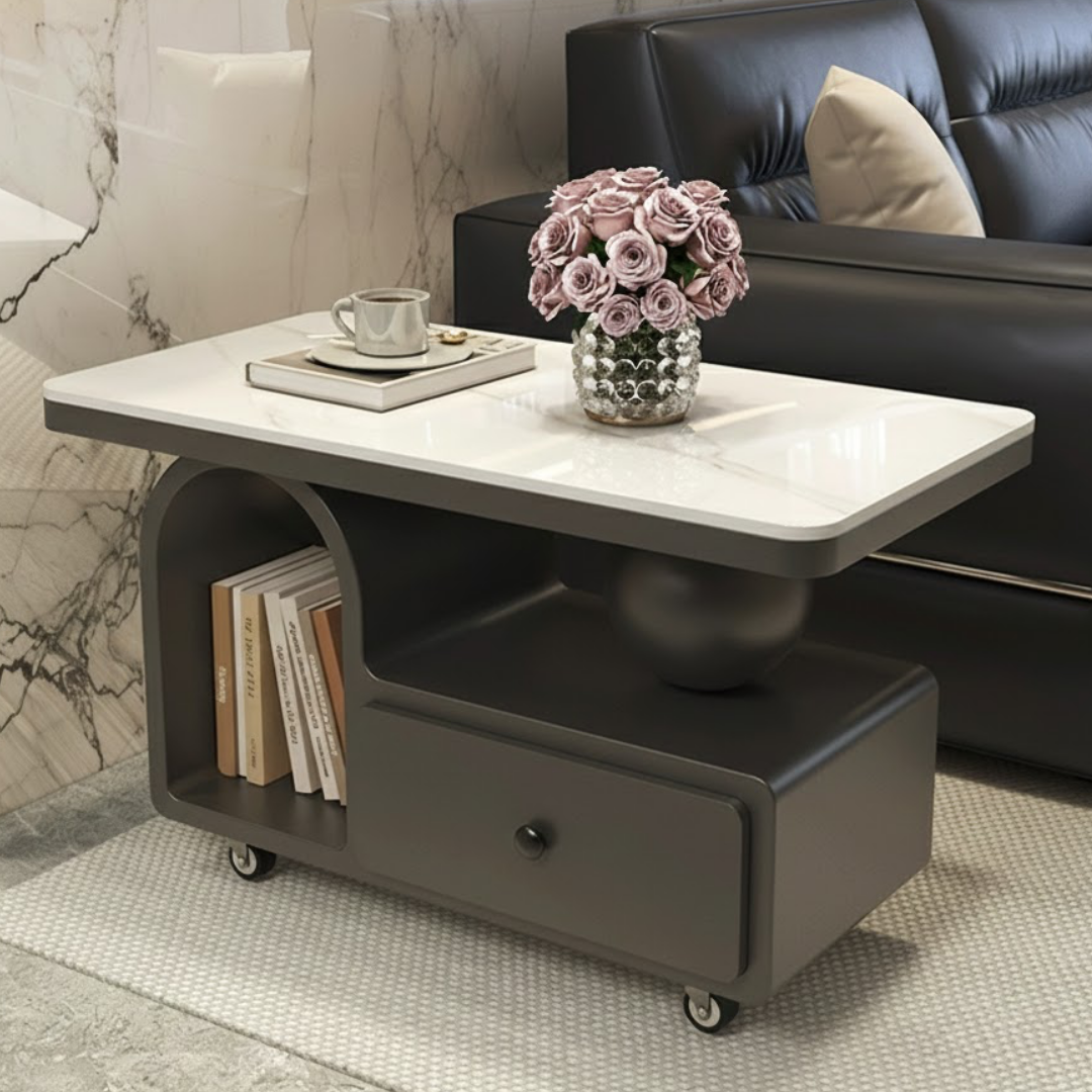 大理石調アーチストレージローテーブル