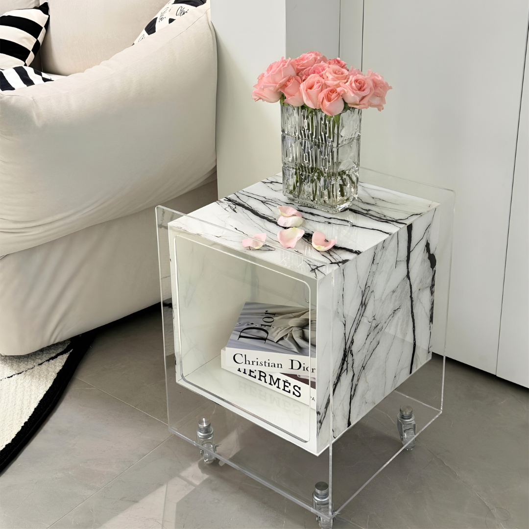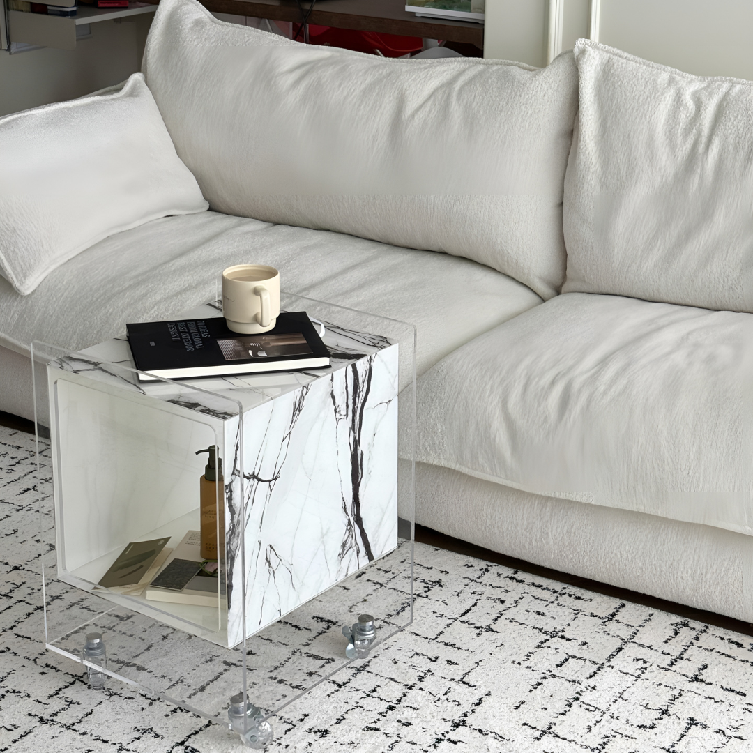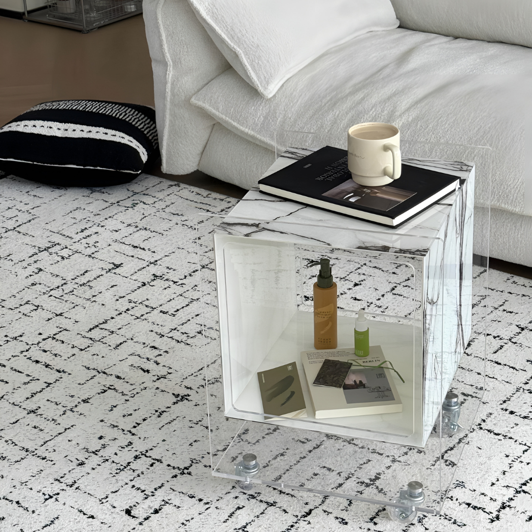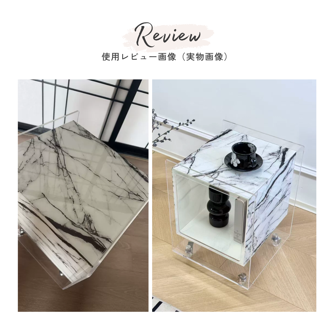 マーブル調クリアキューブサイドテーブル