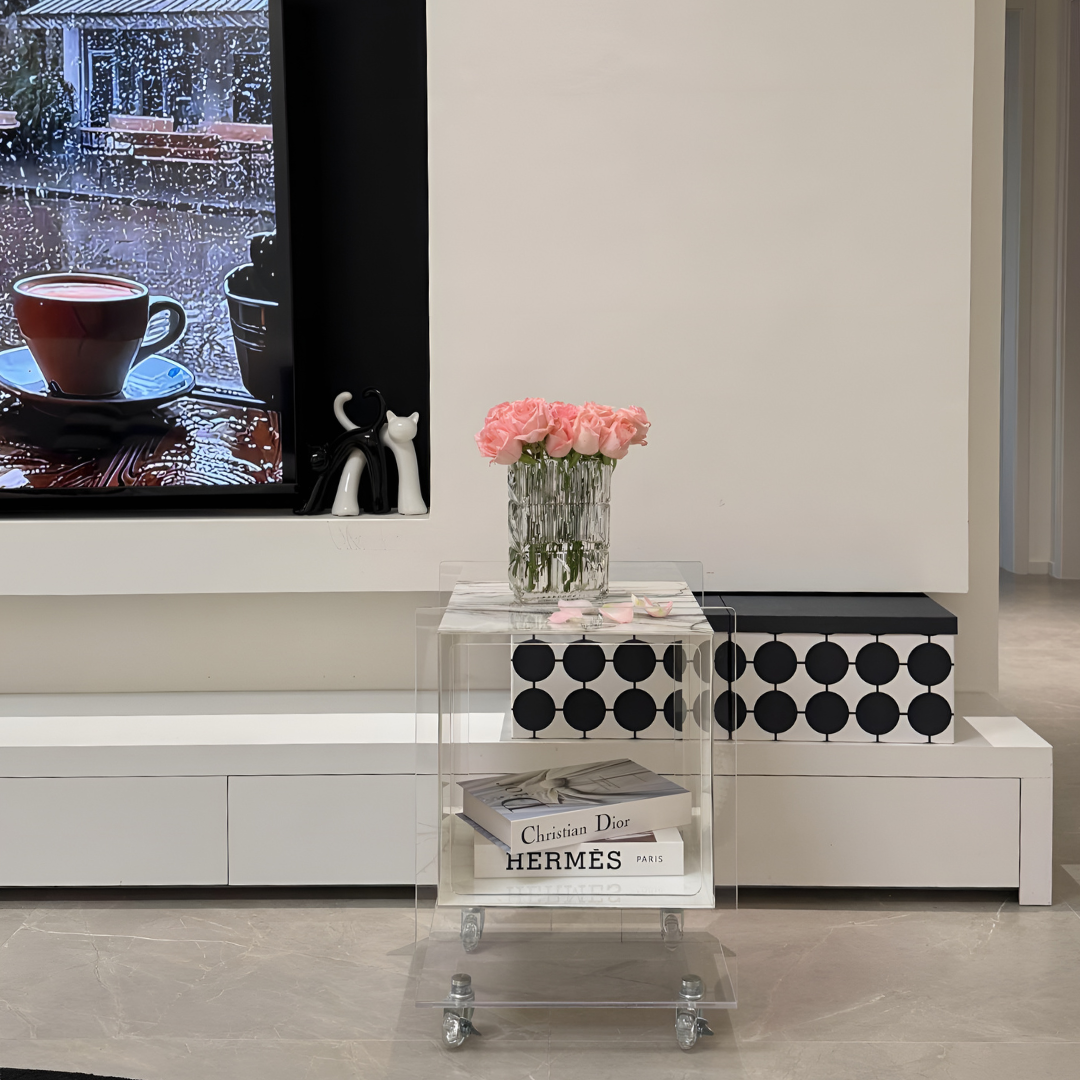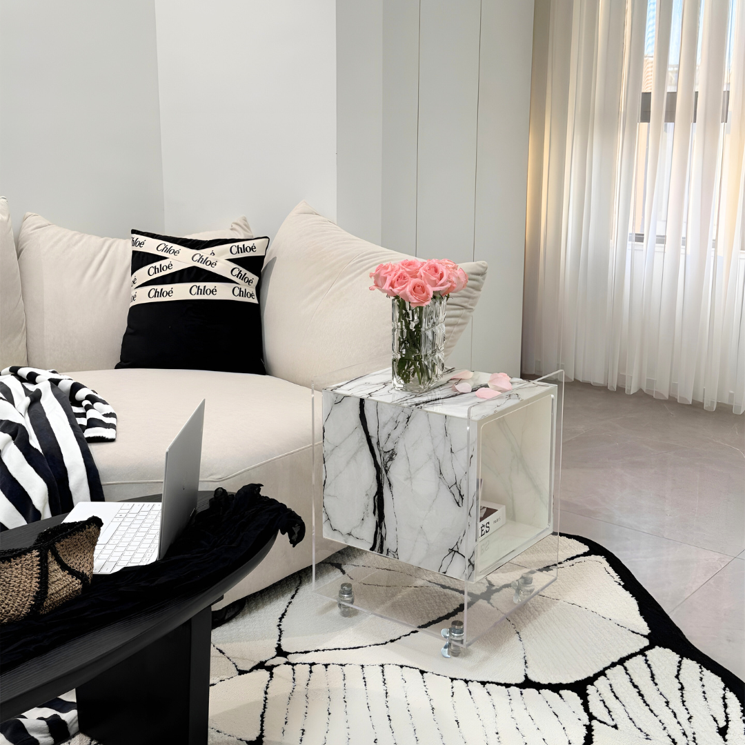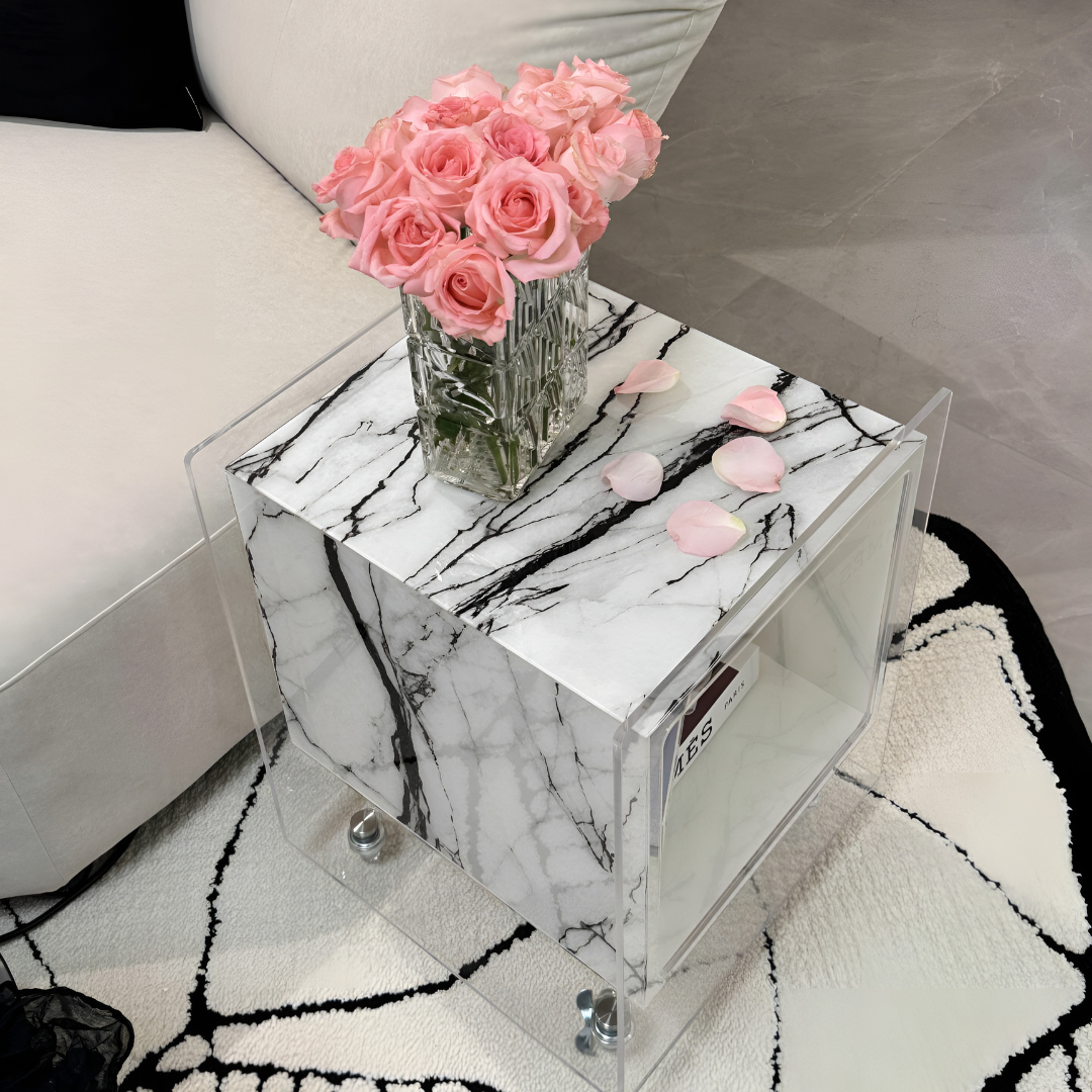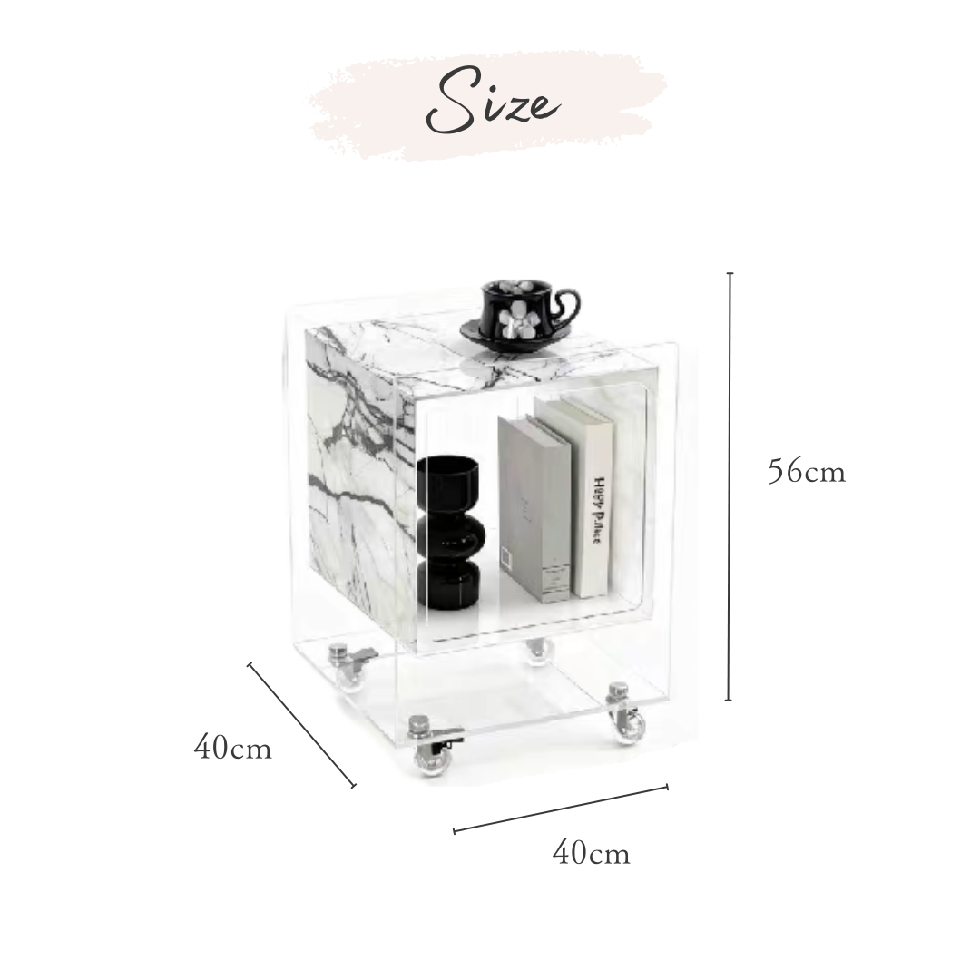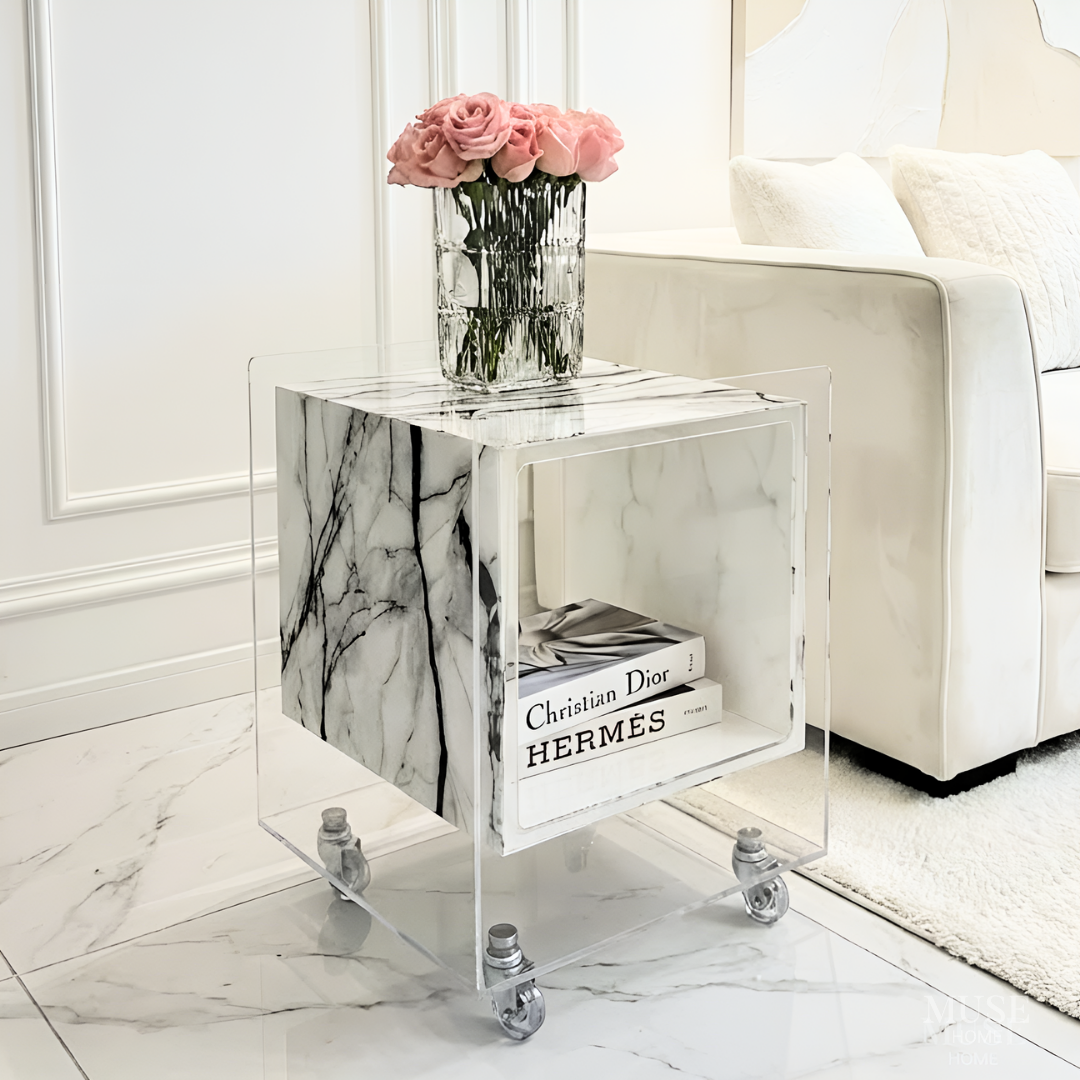 マーブル調クリアキューブサイドテーブル