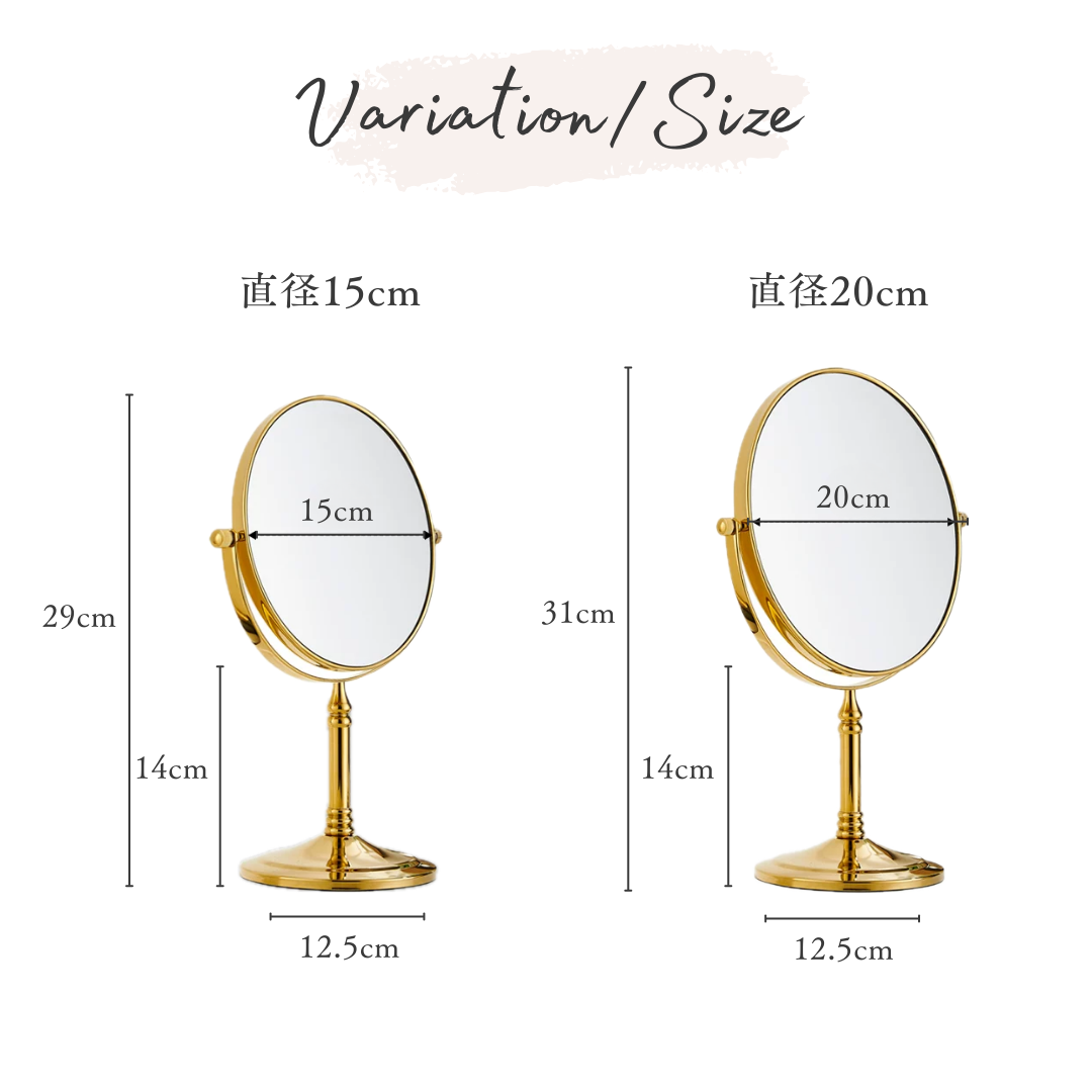 直径15cm:ミラー直径15cm×高さ29cm×土台幅12.5cm