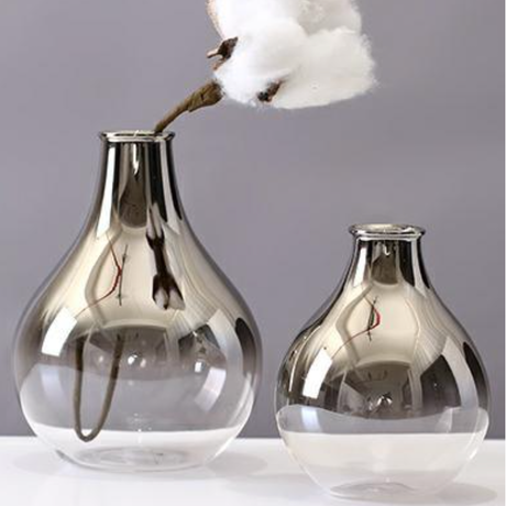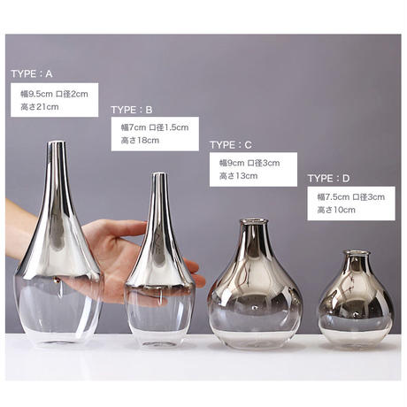 透明感とメタリックの艶めきが調和した、洗練のフラワーベース。