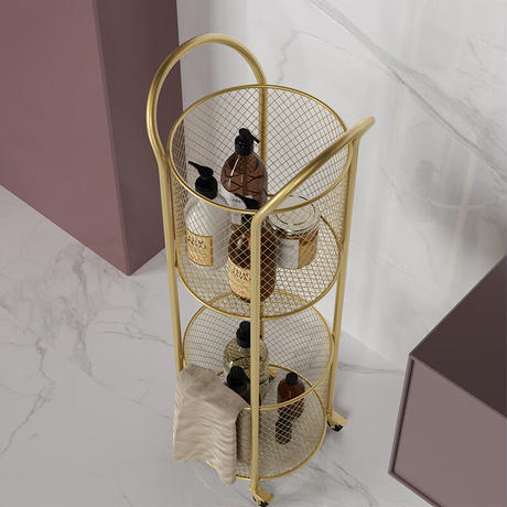 上品なマットゴールドを使用したキャスター付のバスケットカートです♪