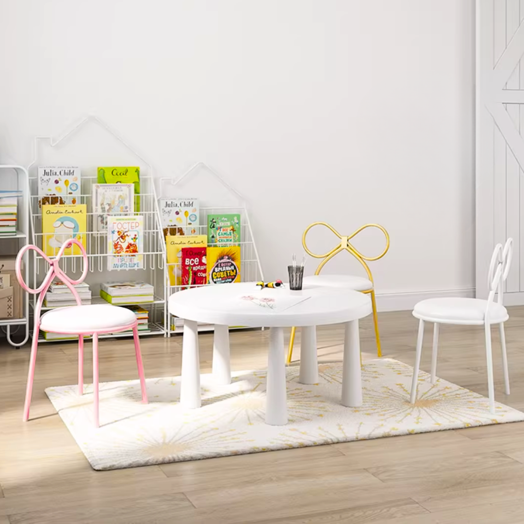 可愛らしいリボンデザインの背もたれにしっかりとした素材の革と高反発スポンジを使用し、厚みのあるクッションで座り心地もよく、脚部分は丈夫に作られており安定した構造でしっかりと座ることができるのでお子様でも安心してお使いいただくことができます♪