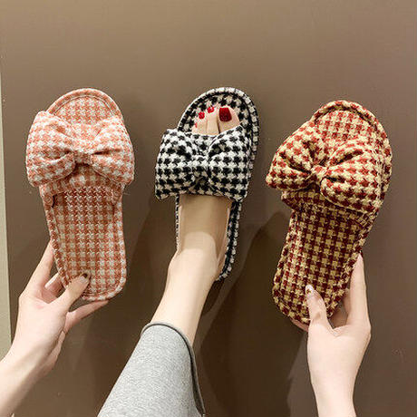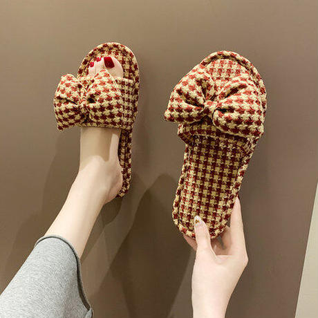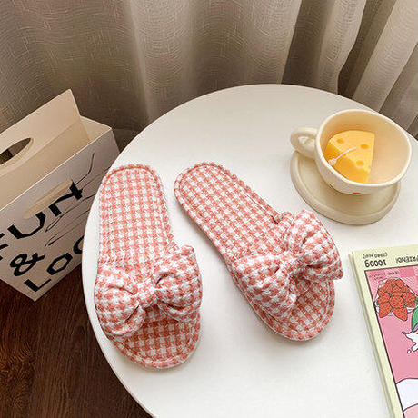 ギンガムチェックフラットスリッパ