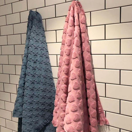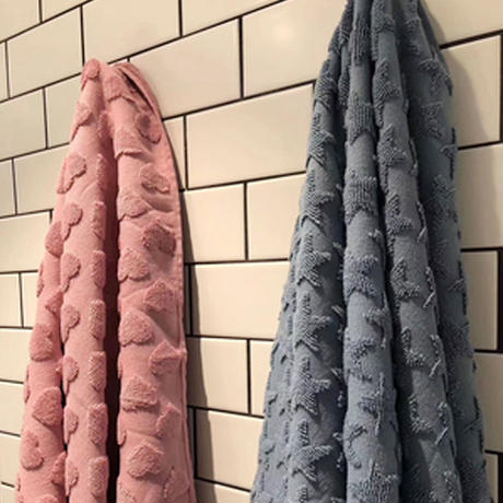 通常のループパイル生地のタオルと違い、デコボコがある分肌に触れる面積が少ないので、べたつかずに乾きやすいです。