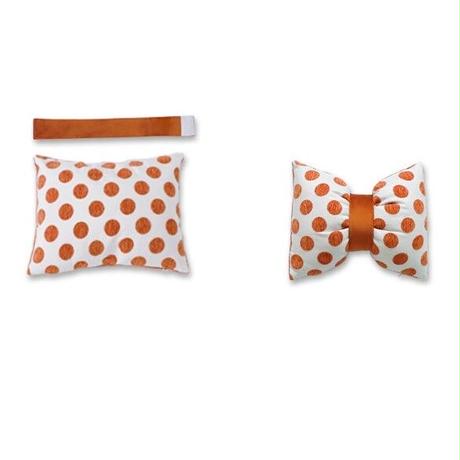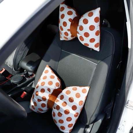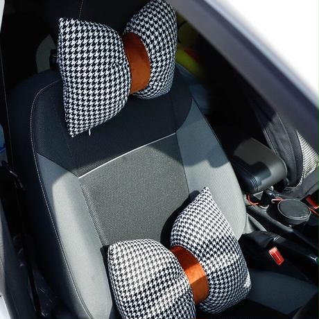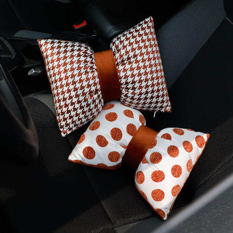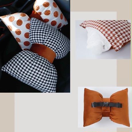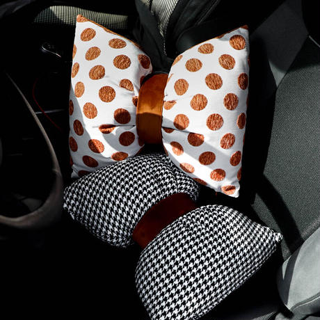 リボンデザインの車などで使えるネッククッションとウエストクッションです。