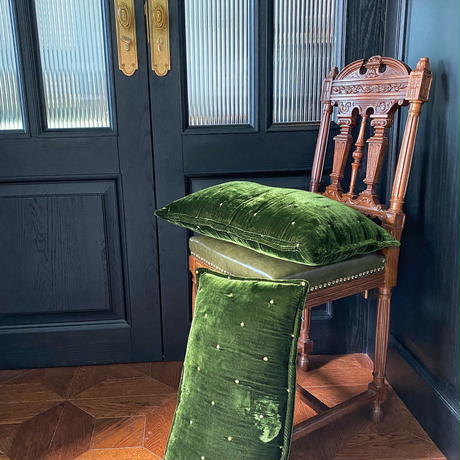 レトログリーンベルベットクッション