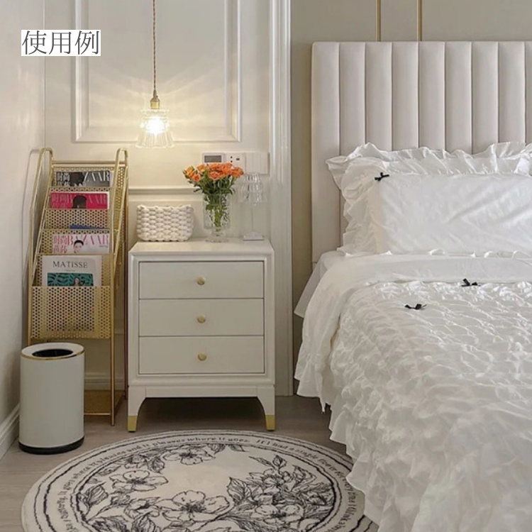 引き出しはしっかりと物を入れられる大容量なので寝室やリビングなど場所を選ばずにお使いいただけます。